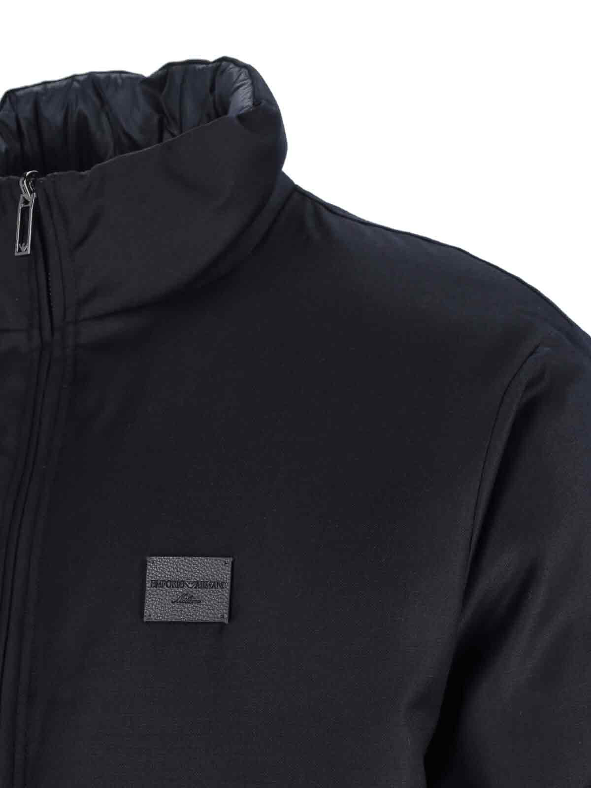 Chaqueta reversible Emporio Armani, en mezcla de lana y viscosa negra, diseño acolchado y acolchado, cuello alto, cierre con doble cremallera, parche con el logotipo de piel tono sobre tono en la parte delantera, dos bolsillos laterales, puños elásticos y dobladillo recto.
