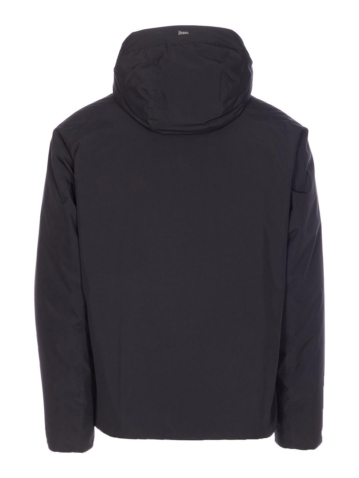 Chaqueta negra Herno con cremallera en las mangas largas, bolsillos con cremallera, capucha acolchada Nombre del color del