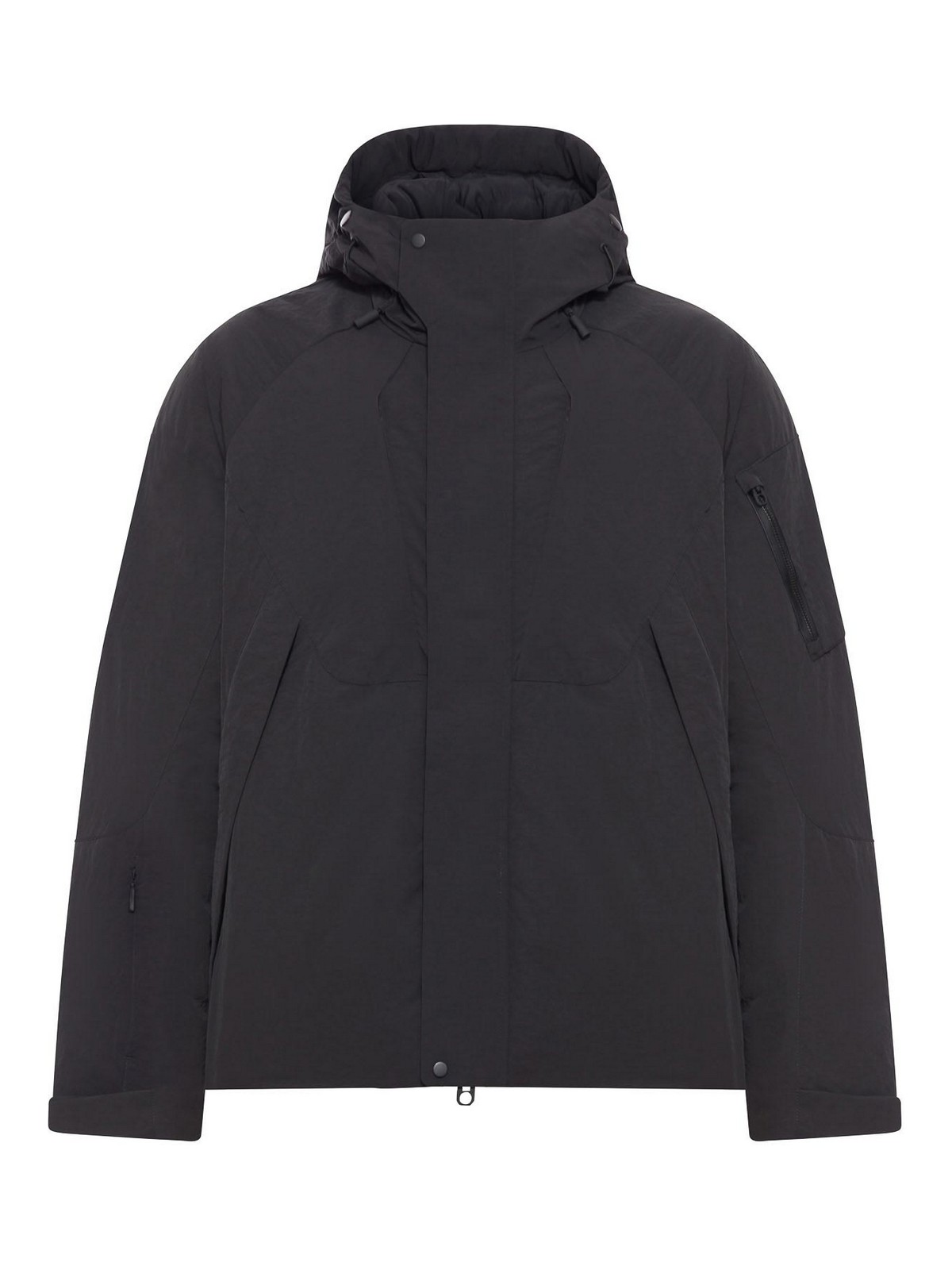 Capucha con cordón ajustable, cremallera, mangas largas, bolsillos con cremallera vertical en las mangas, dos bolsillos inclinados, puños ajustables con cintas antidesgarros, bolsillo trasero grande con cremallera horizontal, color negro