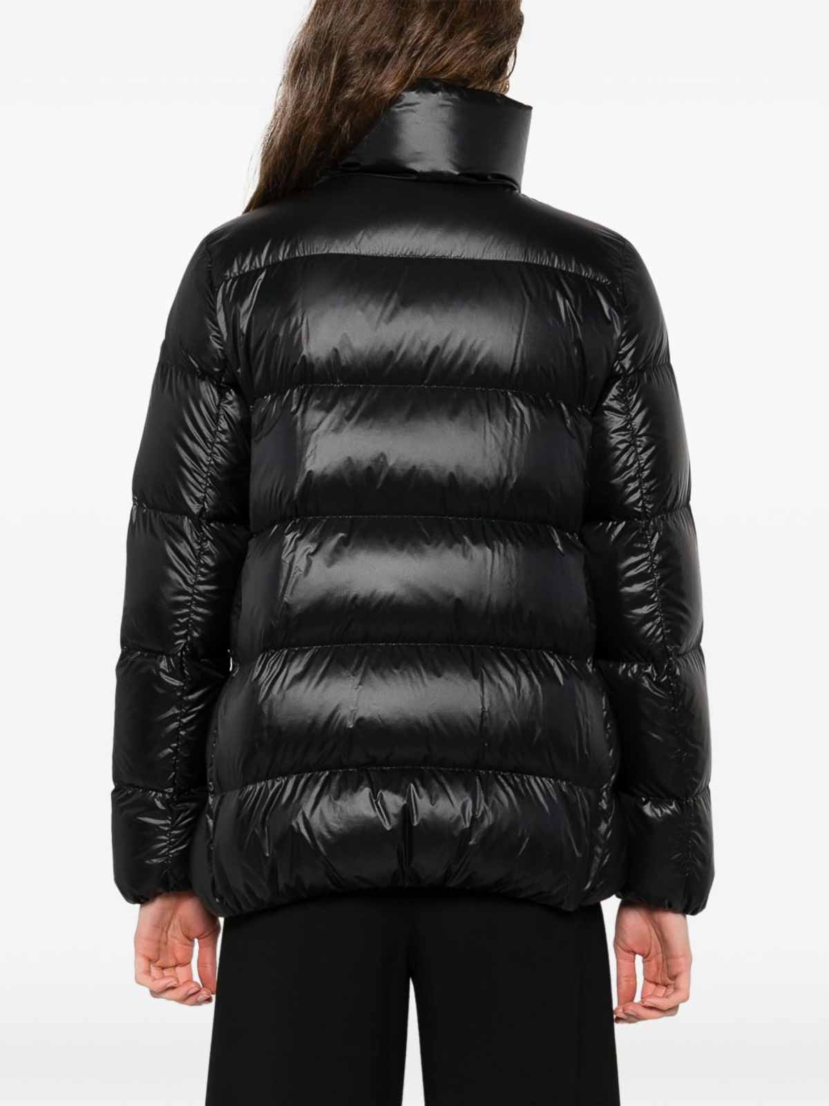 Cuello alto acolchado negro con botones a presión, mangas largas y dobladillo recto