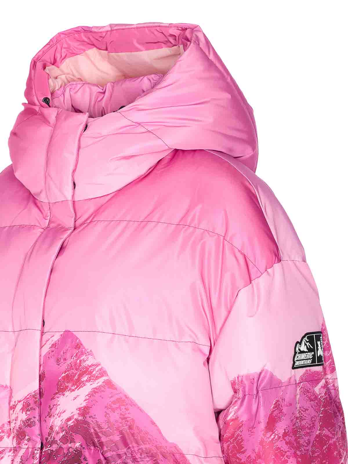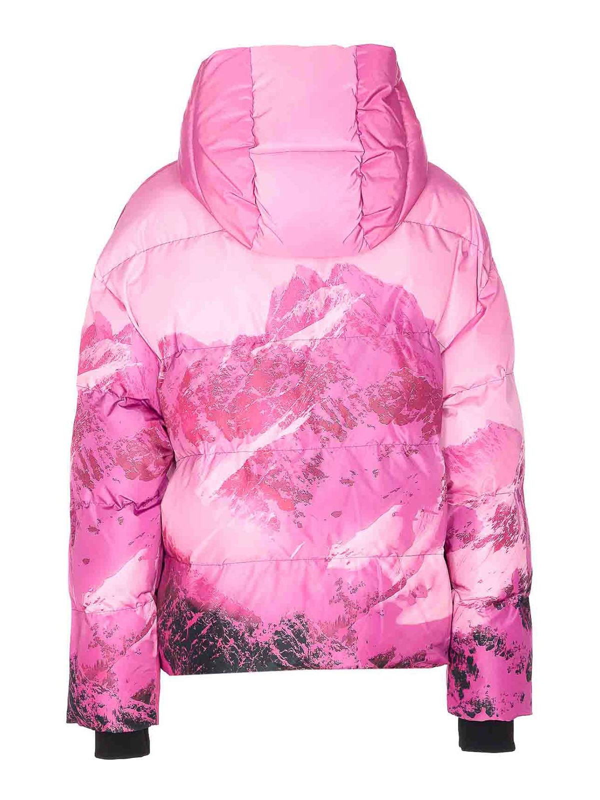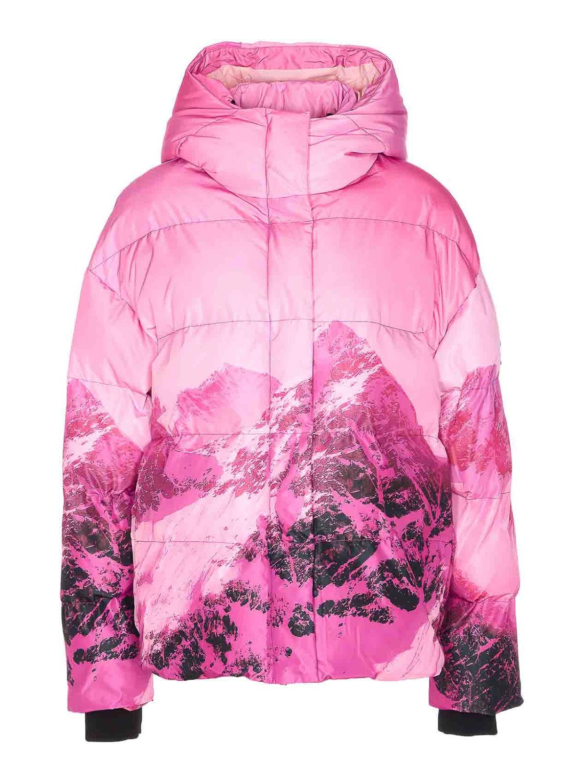 Chaqueta Patrizia pepe fucsia con cierre frontal con cremallera y botones, detalle de capucha, manga larga, bolsillos con cremallera, puños acolchados, estampados y elásticos