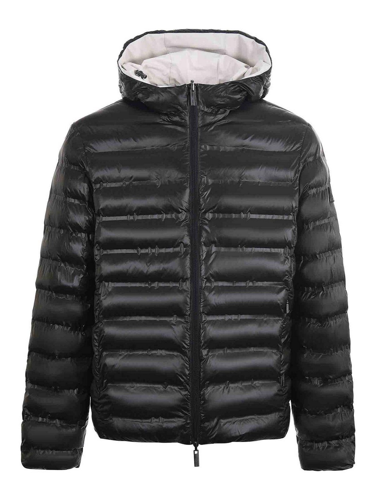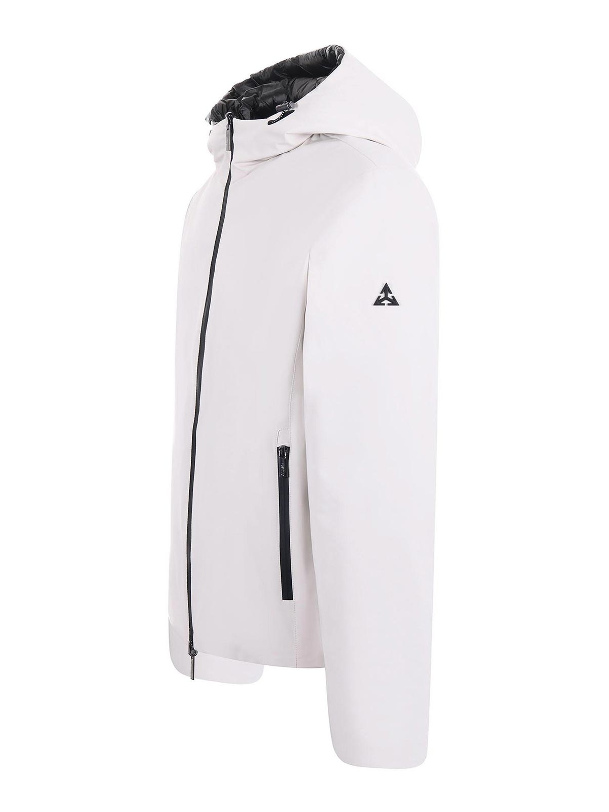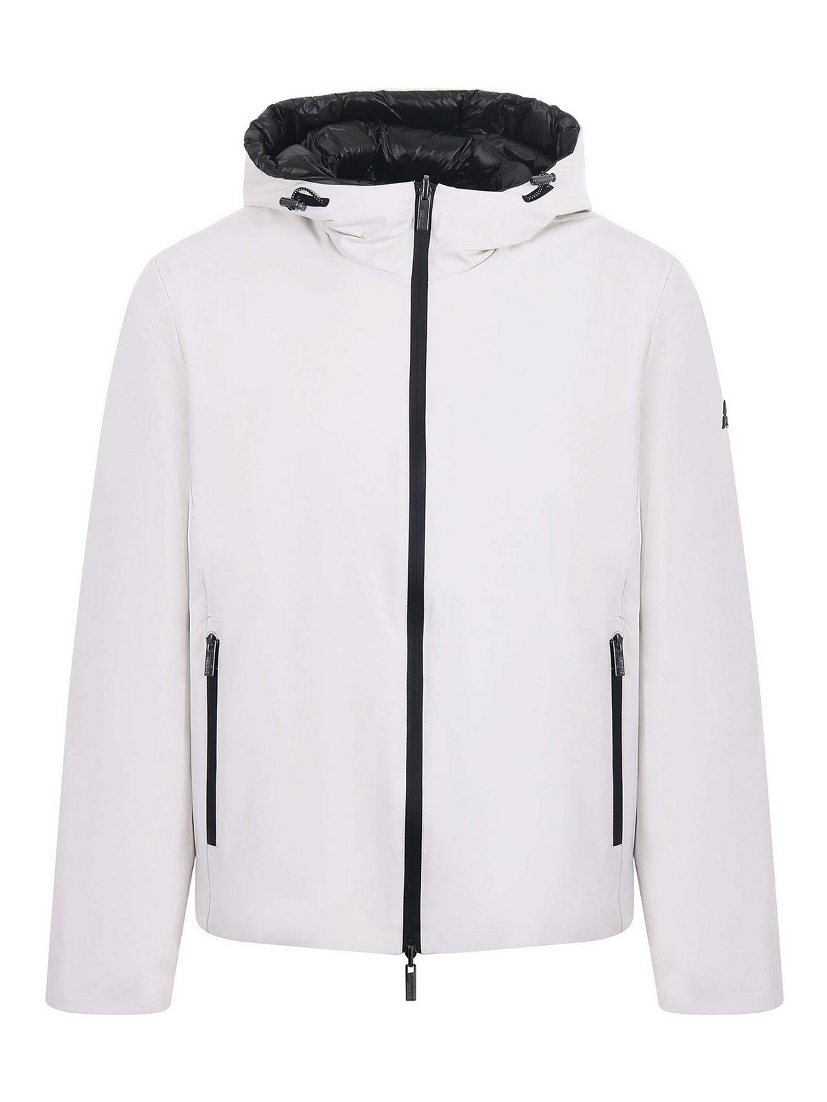 Chaqueta heskimo reversible de nailon elástico color hielo y nailon acolchado verde oscuro. Ligeramente acolchada. Capucha con cordón ajustable. Bolsillos con cremallera. Cierre con cremallera de doble corredera. Logotipo engomado en la manga izquierda. talla mostrada: 50 95% poliéster, 5% elastano 100% poliéster Acolchado: 100% poliéster
