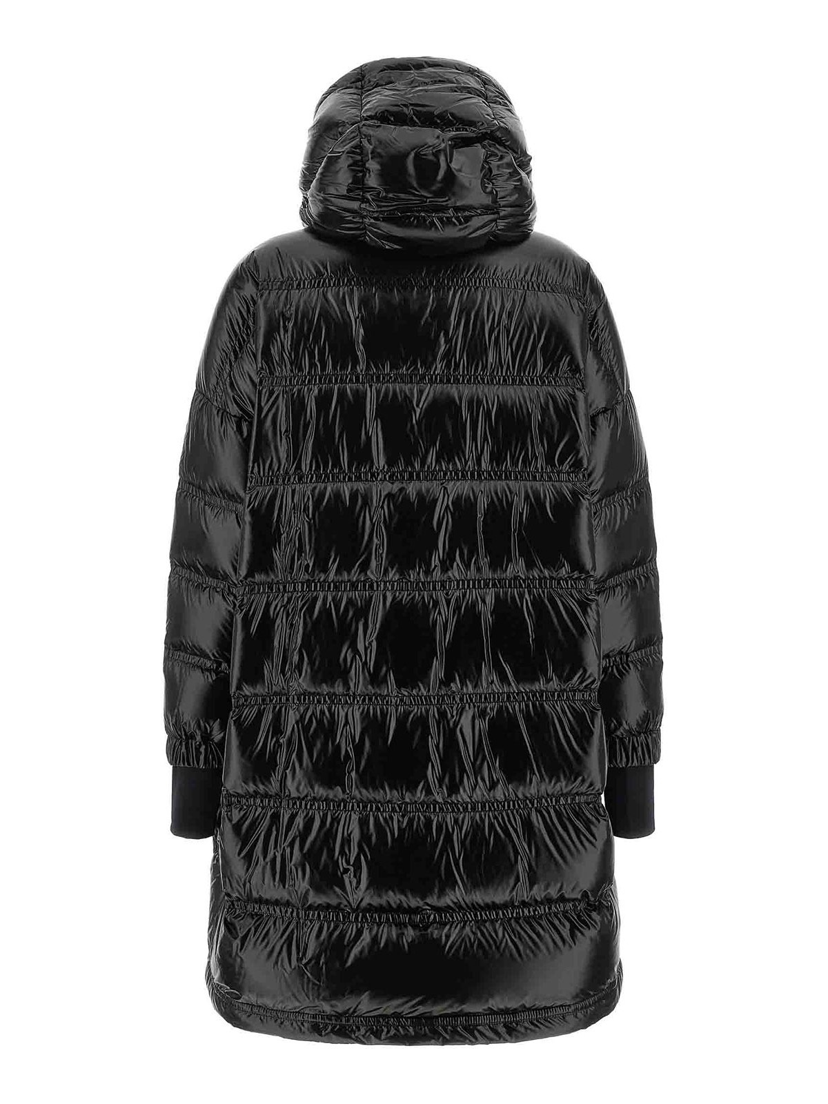 Chaqueta larga «rochelairs» en laca acolchada ultraligera y repelente al agua con capucha de ganso ajustable y extraíble, cuello alto, ykk Aquaguard, altamente impermeable, muy resistente al agua, con cremallera en los bolsillos, manga larga con puños elásticos, polaina a prueba de viento, hombros caídos y parche con el logotipo, cordón en el dobladillo