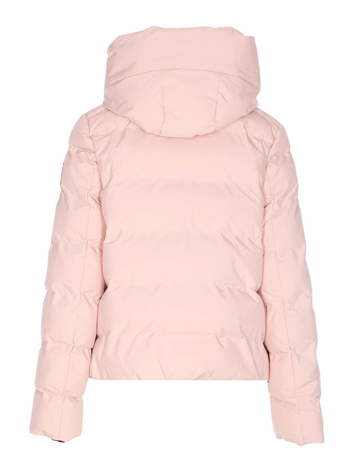 Guarda la chaqueta rosa con botones en la parte delantera, mangas largas, bolsillos acolchados con cremallera, parche lateral acolchado, parche lateral, logotipo, puños, nombre del diseñador: rosa