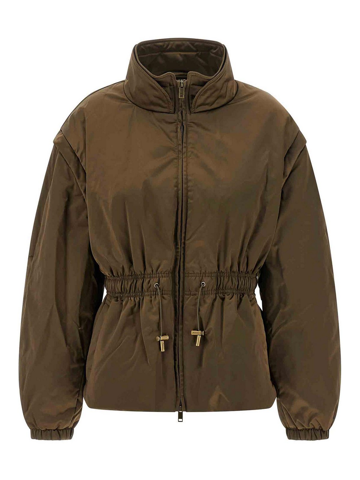 chaqueta de satén acolchada y acolchada dastyni', cuello doble alto, cierre frontal con cremallera, cintura elástica con cordón, bolsillos, manga larga con puños elásticos extraíbles