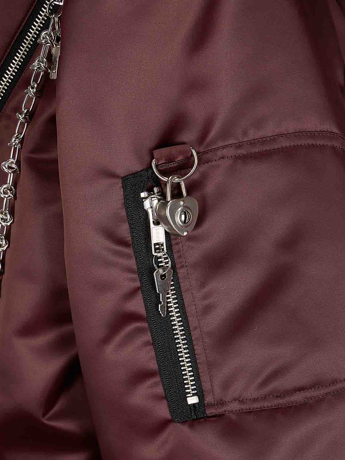 Chaqueta bomber Helter de tela satinada con adornos metálicos en la parte delantera, cierre frontal con cremallera, bolsillos frontales con cierre de cremallera.