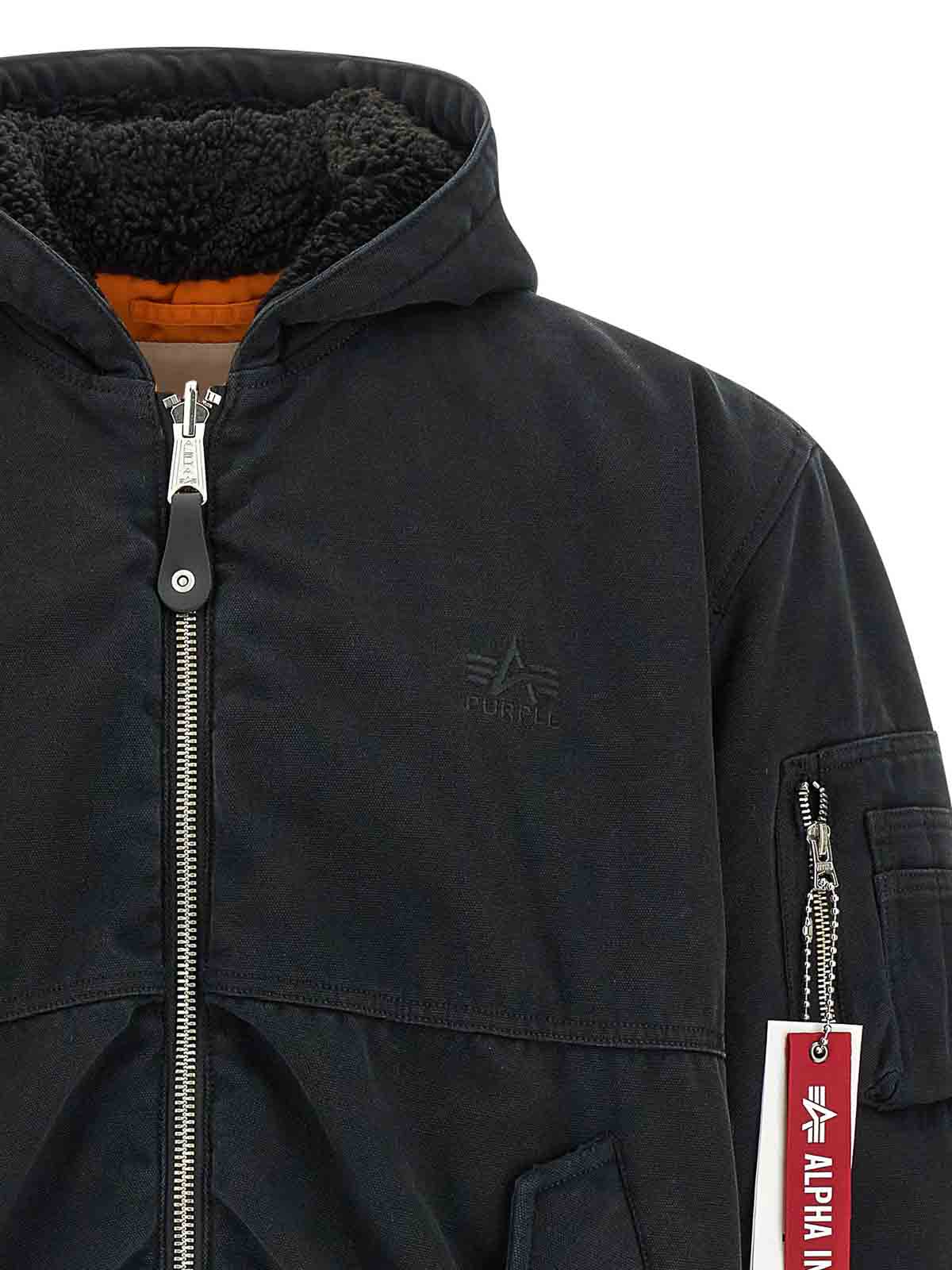 Chaqueta bomber reversible morada Alpha Industries x en lona de algodón acolchada y bloques de color nailon, capucha con forro de tela con efecto piel de oveja, bordado y maxi parche con el logotipo, cierre frontal con cremallera, bolsillos, mangas largas, dobladillo de corte crudo y elástico en el dobladillo.
