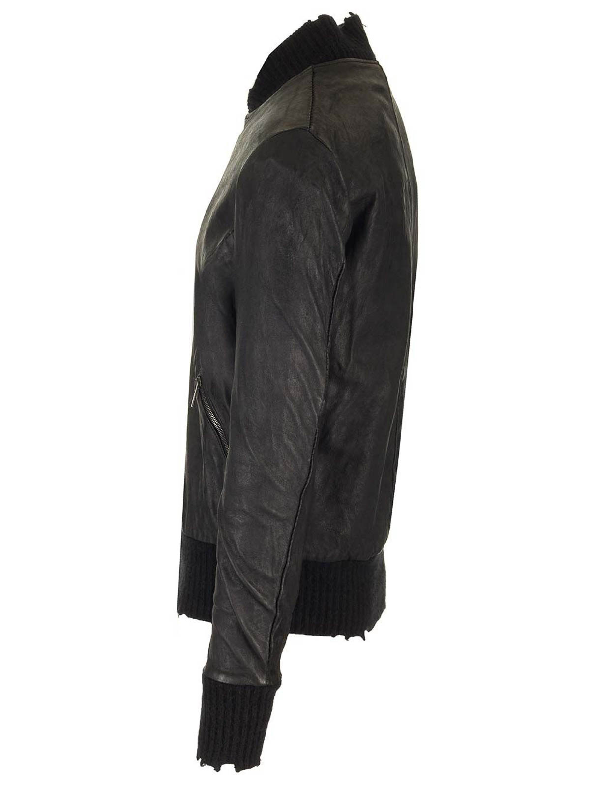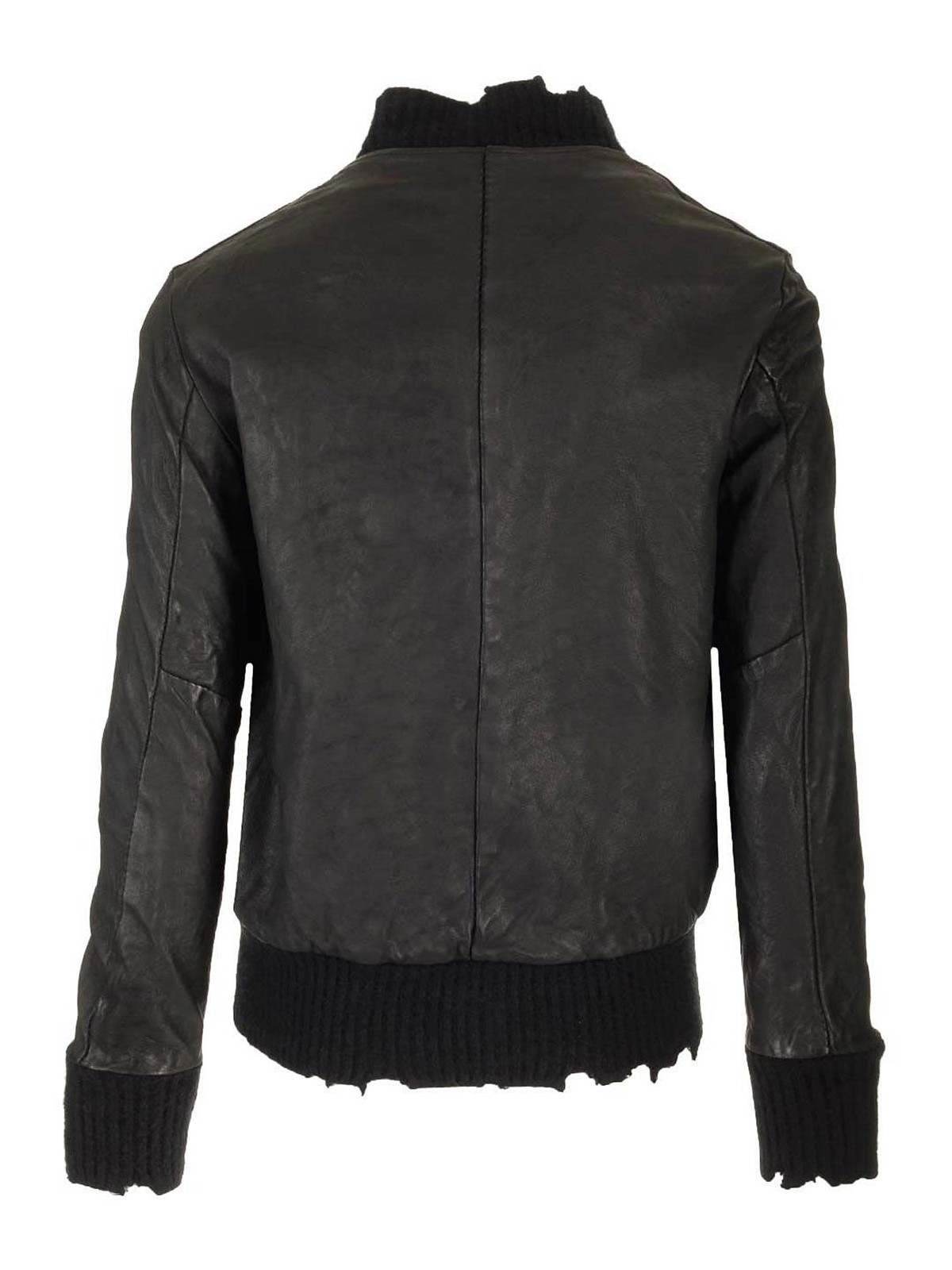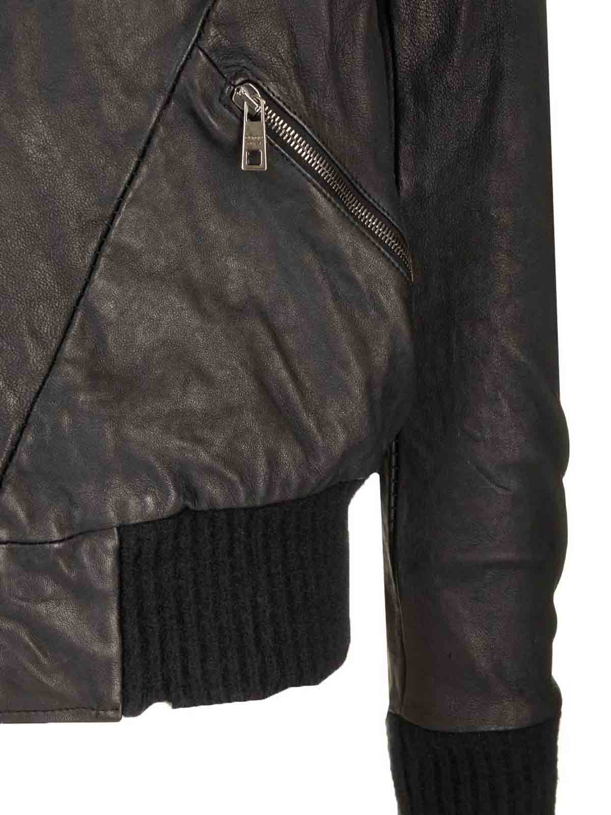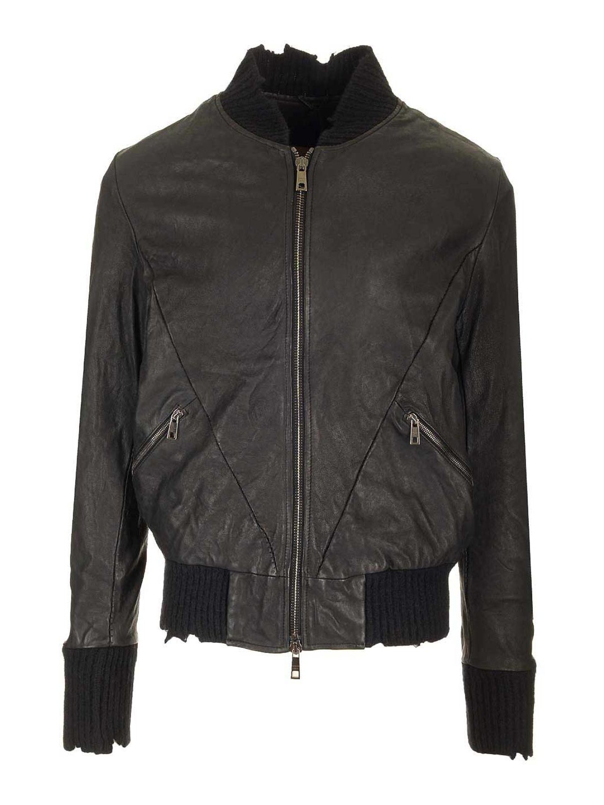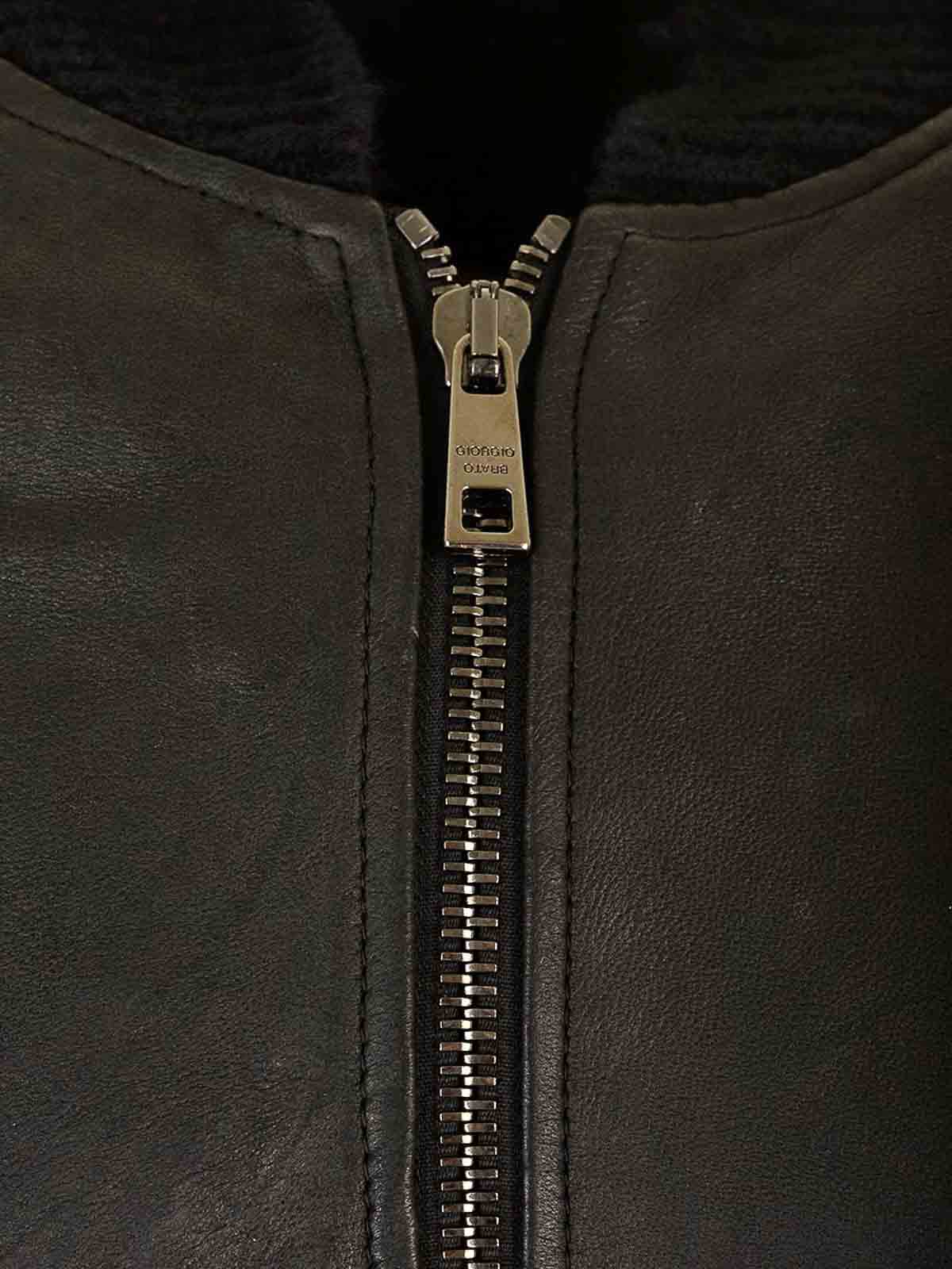 Chaqueta bomber de piel teñida de vegetales con cierre y bolsillos con cremallera, puños y dobladillo acanalados con efecto desgastado Nombre del color del diseñador: negro