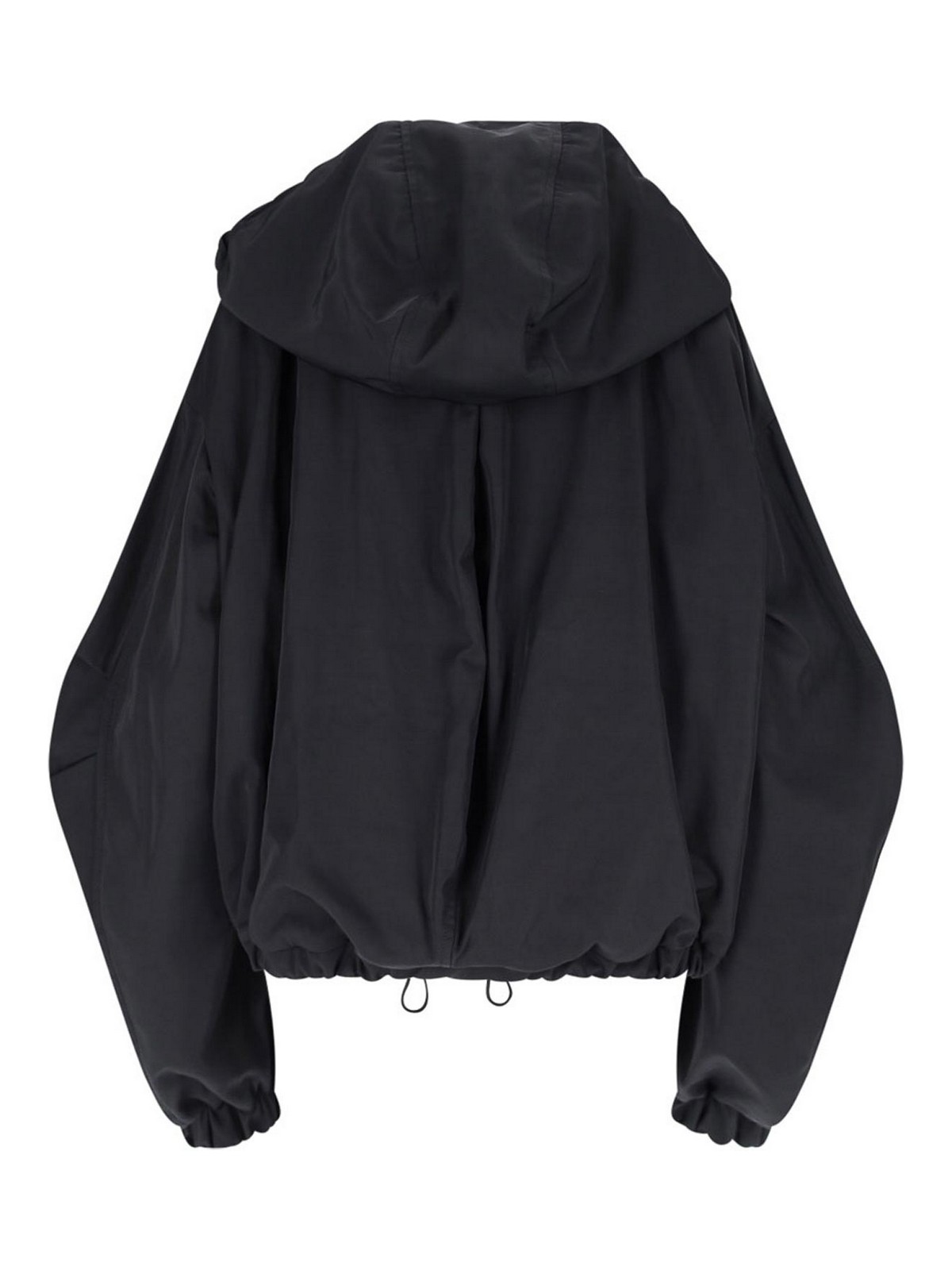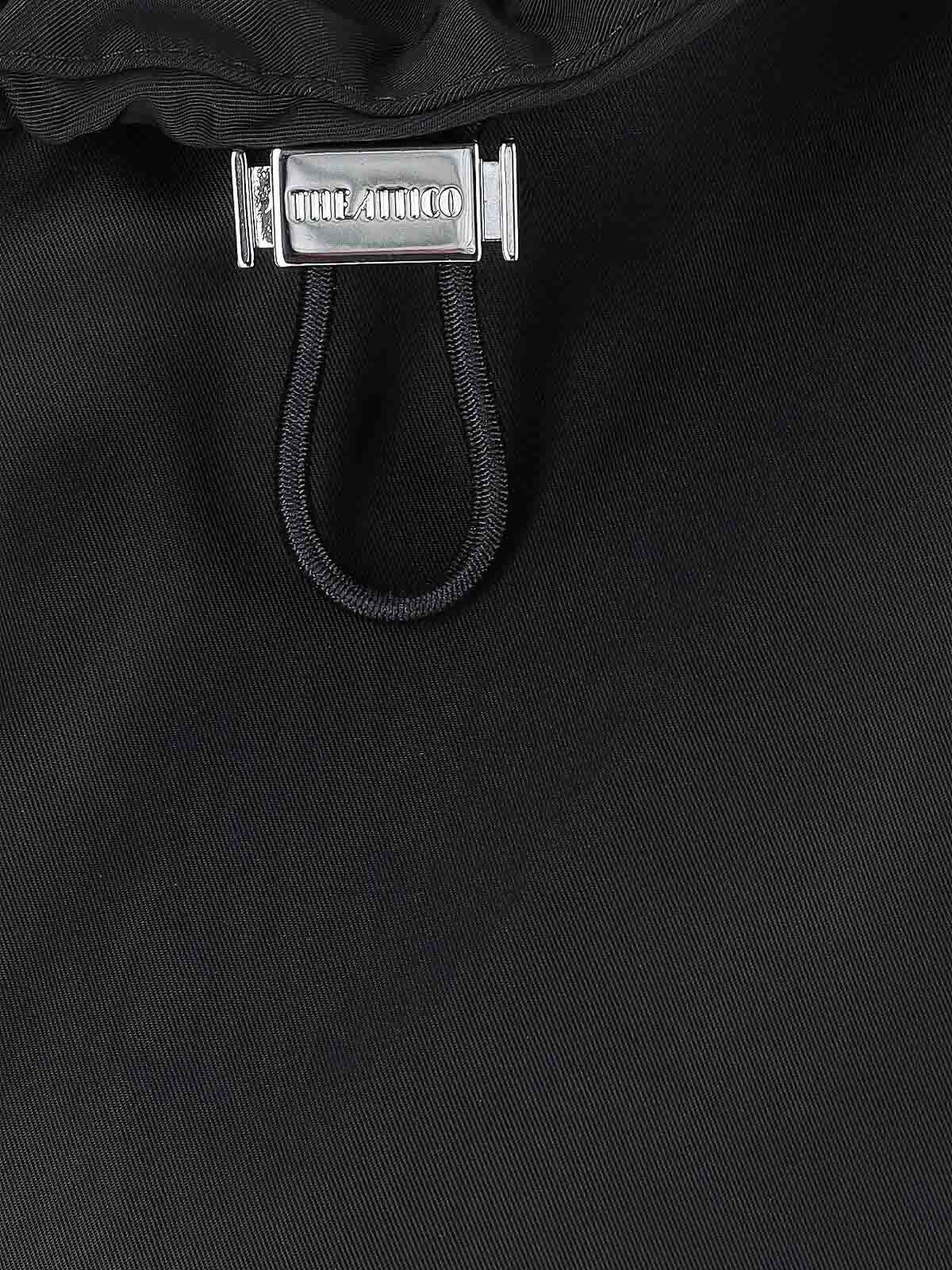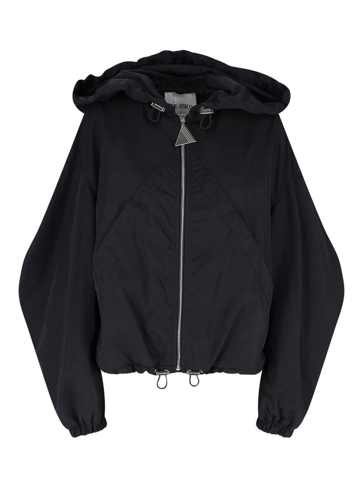 La chaqueta bomber Attico con cremallera en tela negra, cierre con cremallera, capucha con cordón ajustable, logotipo en el tirador con cremallera, manga larga, cordón ajustable en la cintura y dobladillo recto.