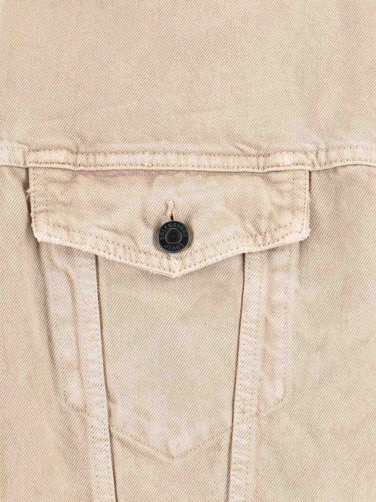 Chaqueta con el logotipo de Balenciaga, confeccionada en vaquero de algodón beige, efecto desgastado, cuello clásico, cierre con botones, dos bolsillos frontales con botones, dos bolsillos laterales, maxi logotipo bordado en contraste en la parte posterior, puños abotonados y dobladillo recto.