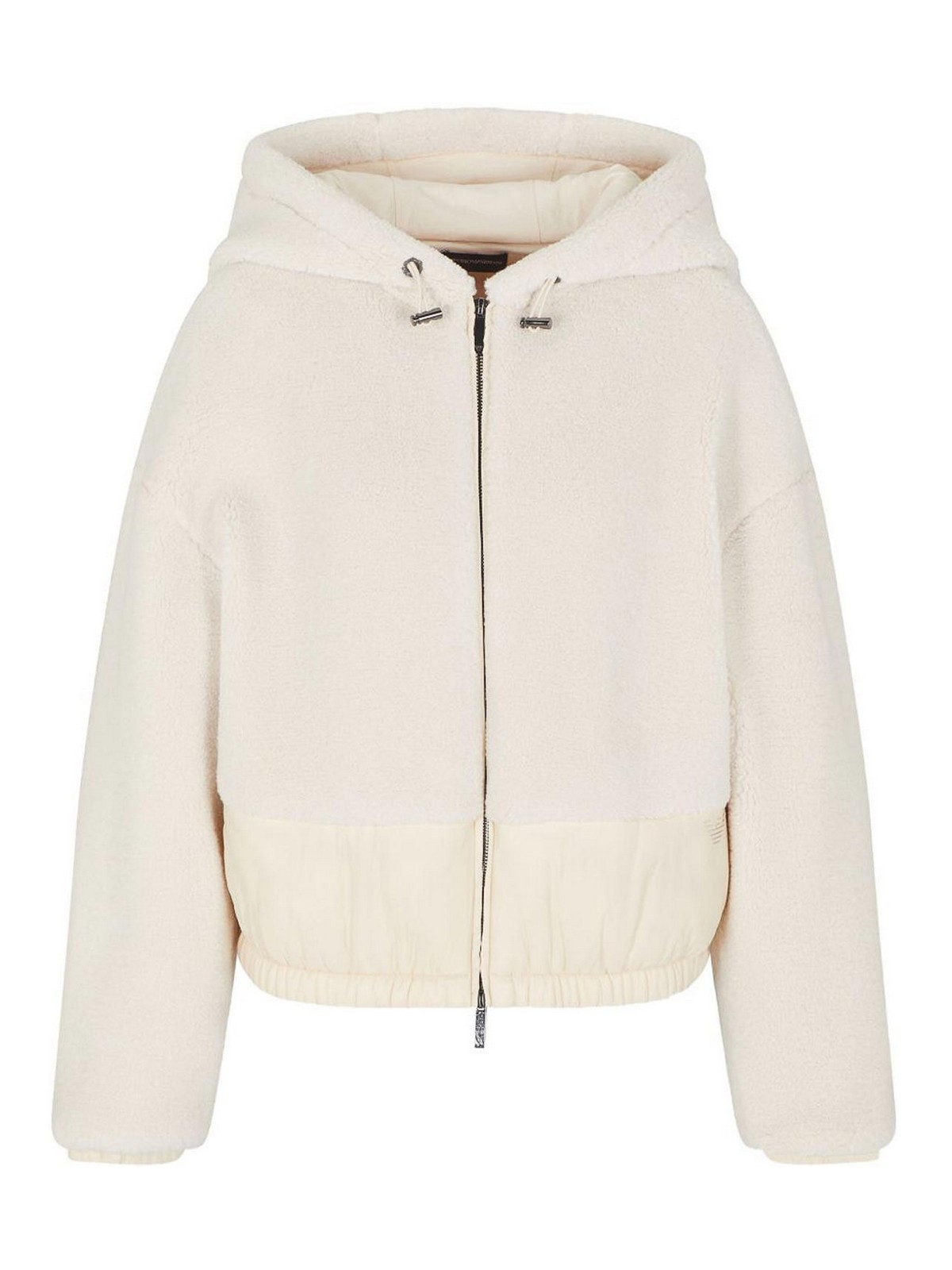 Capucha con cierre de cremallera con textura de forro polar blanco, dobladillo elástico, longitud corta