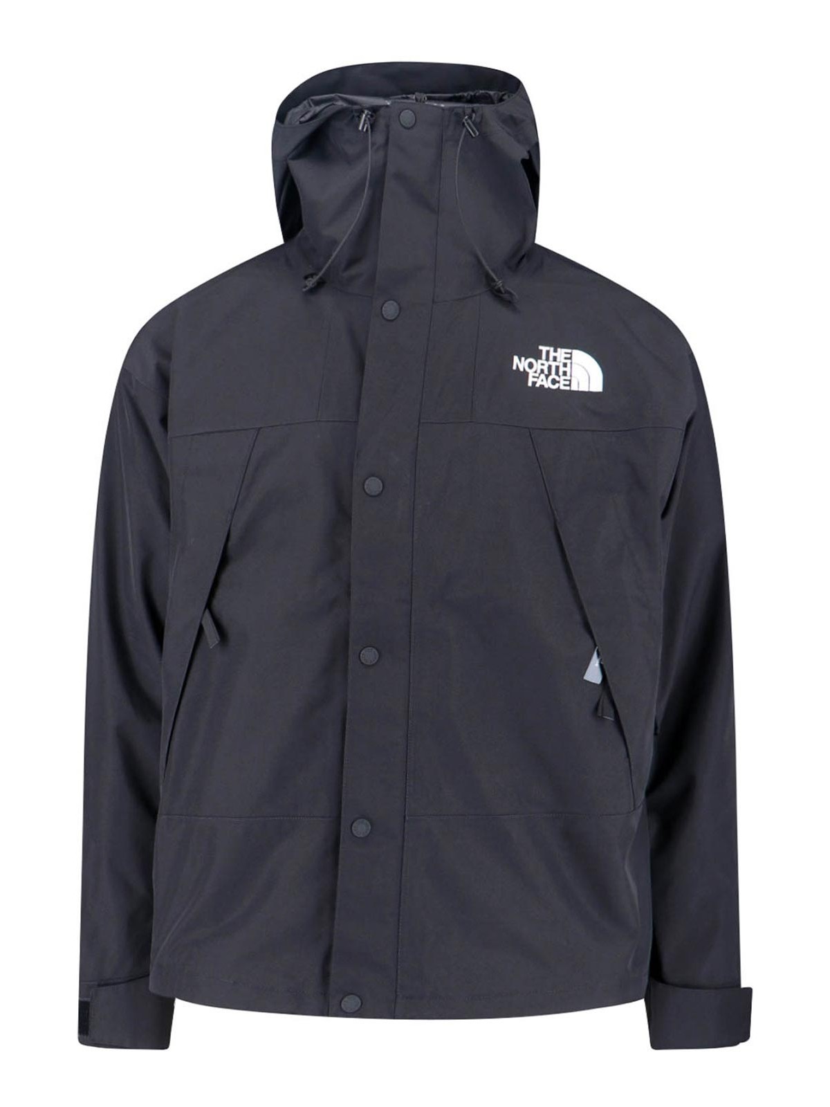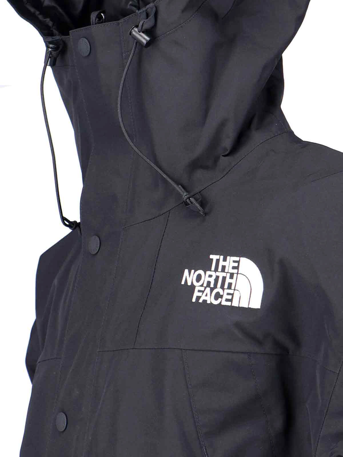 La chaqueta de montaña Gore-tex de The North Face, confeccionada en tejido negro repelente al agua, capucha con cordón, cuello alto, cierre con botón y cremallera oculta, puños ajustables con velcro, detalle bordado en contraste, logotipo bordado en contraste en la parte delantera y trasera, dos bolsillos laterales con cremallera, cordón en la parte inferior y dobladillo recto.