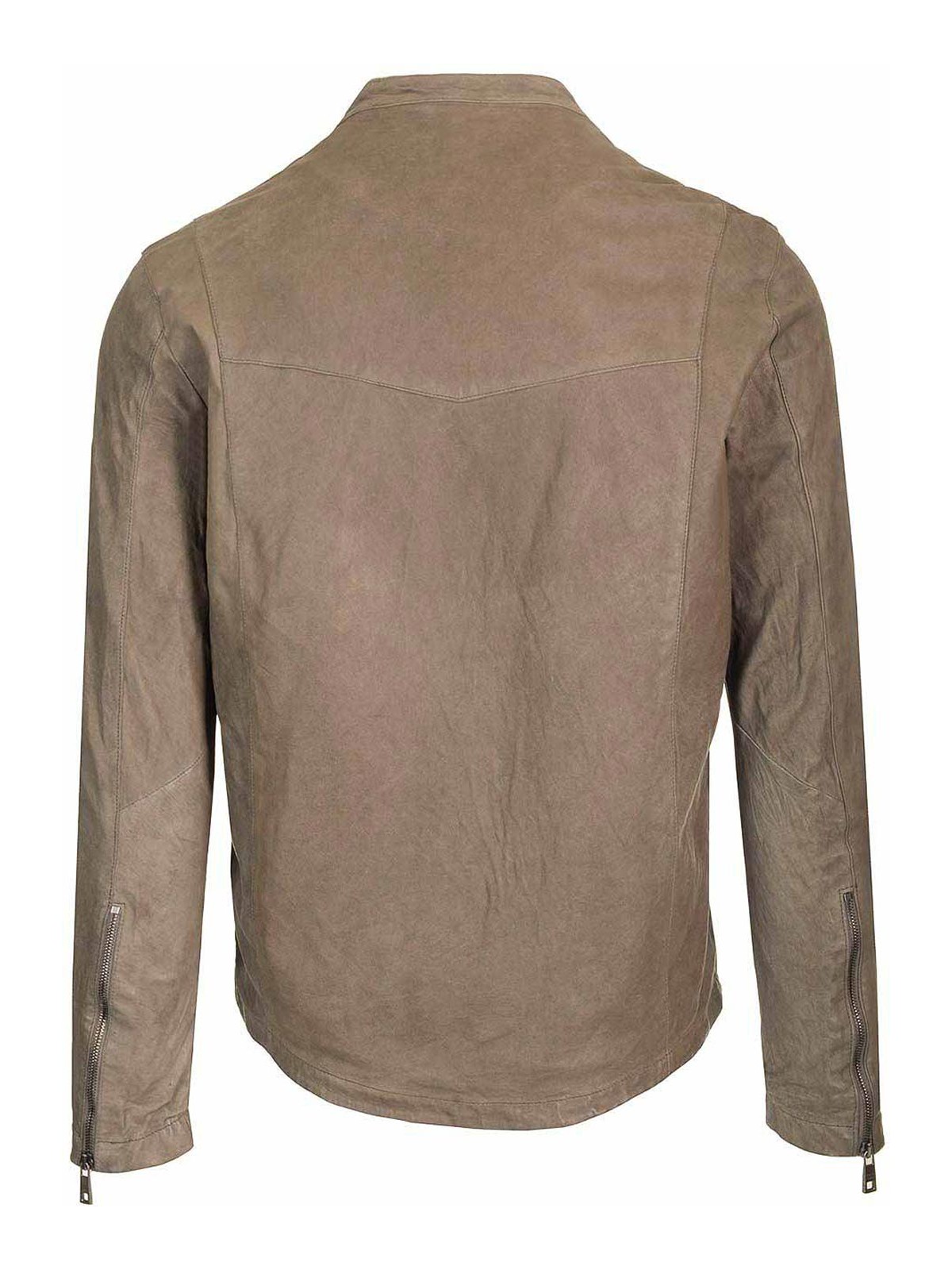 Chaqueta motera de piel de cordero tratada con vegetales con cierre de cremallera y bolsillos con cremallera