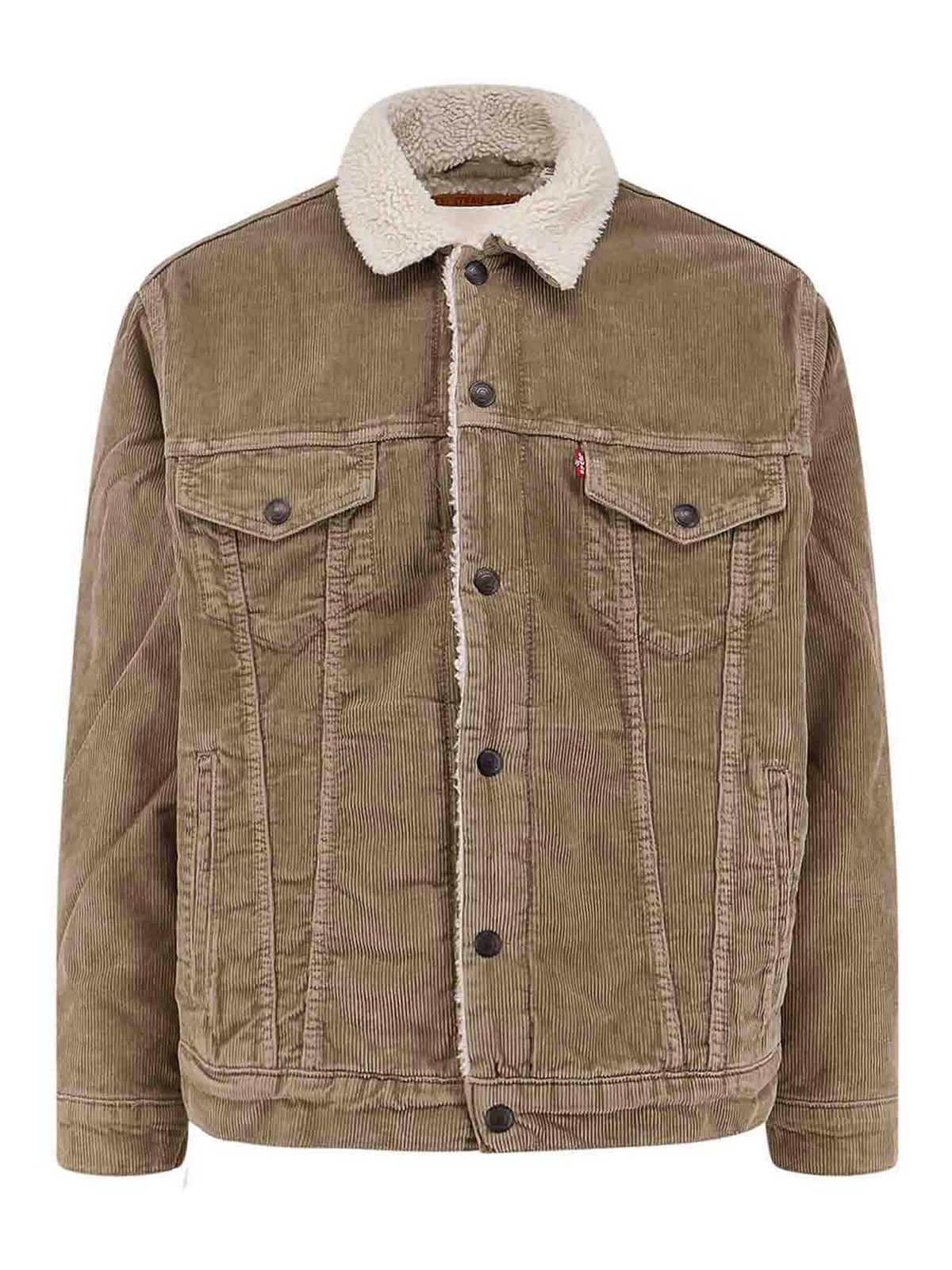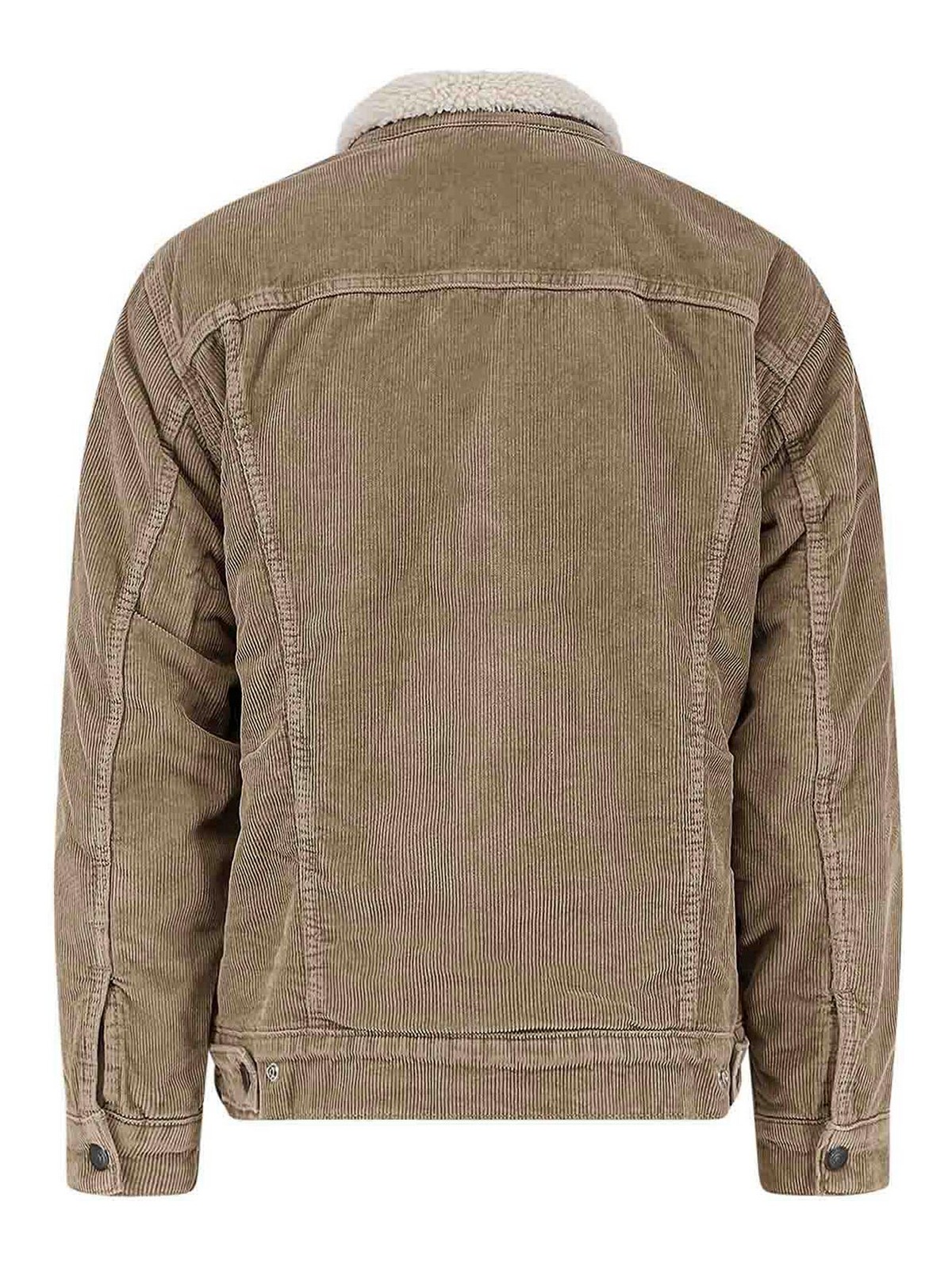 Cierre con botón a presión, cuatro bolsillos en la parte delantera, icónica placa con el logotipo rojo, interior de piel sintética 100% algodón, 59% poliéster reciclado, 41% poliéster