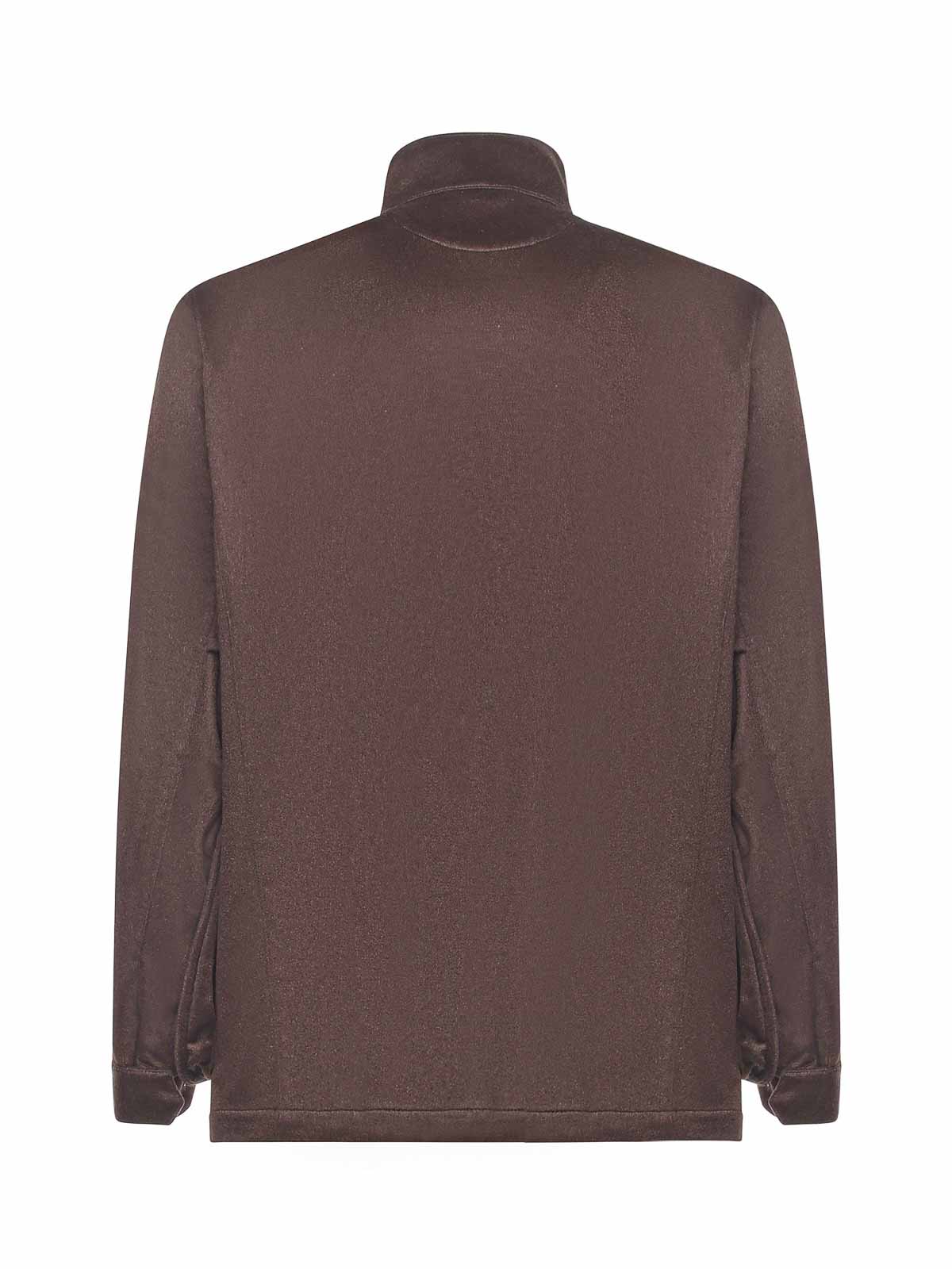 El cuello alto con bolsillos de parche y mangas largas, el tamaño que se muestra en la foto es un color marrón hecho en Italia