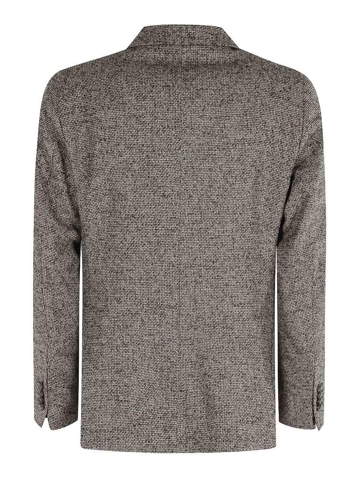 Origin Italy presenta mangas largas marrones de un solo pecho con botones, bolsillos frontales, bolsillos de parche.