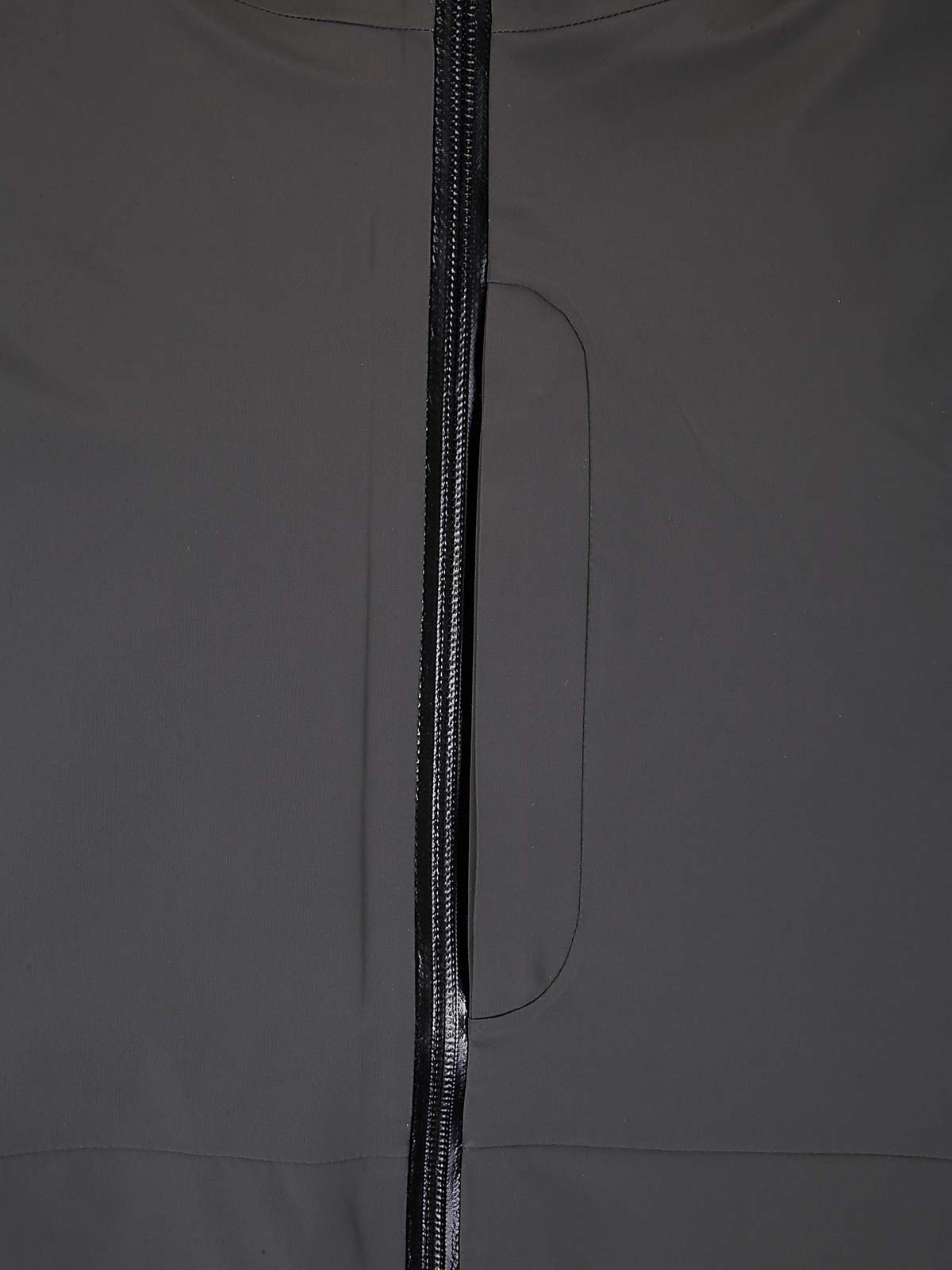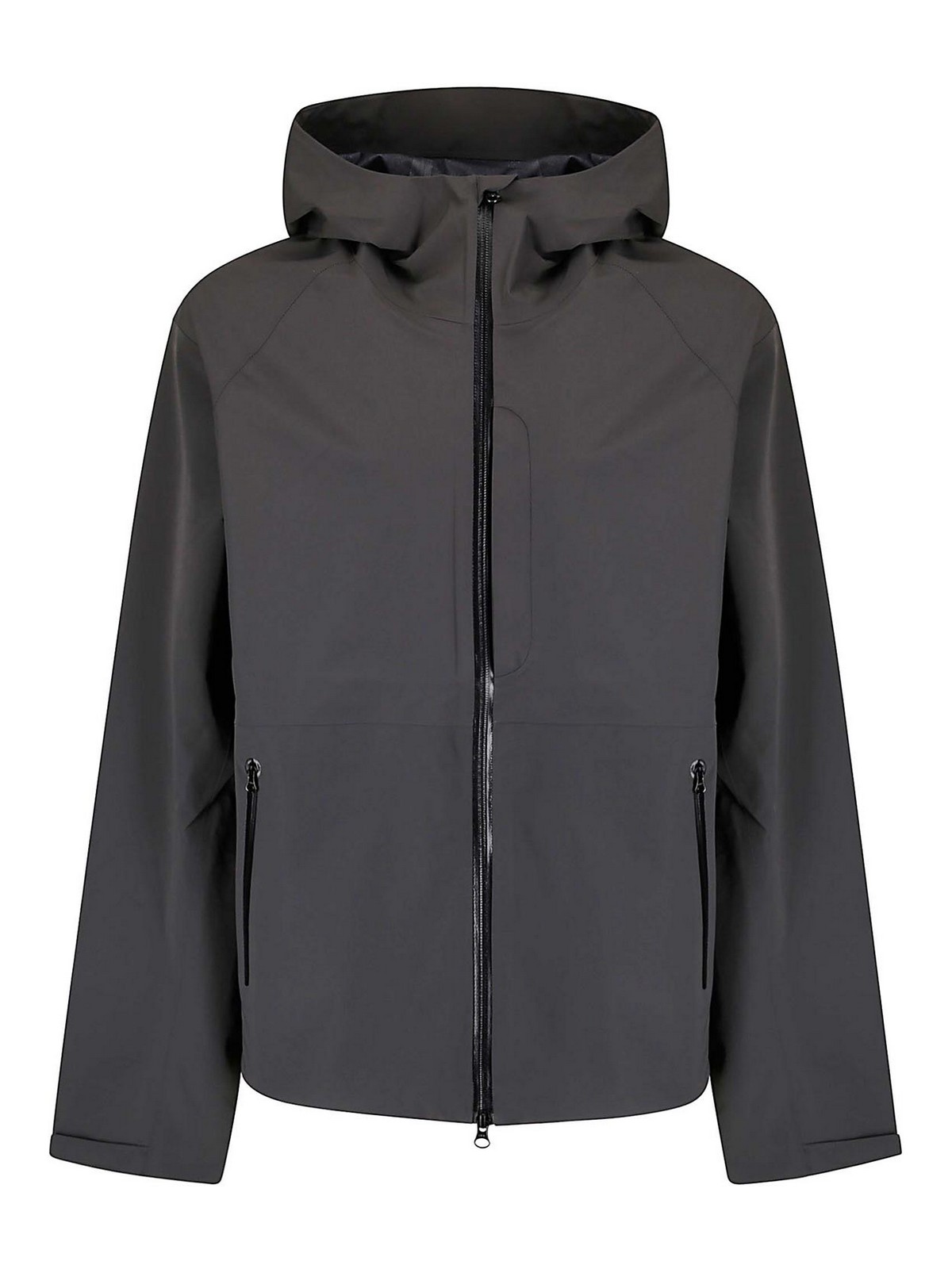 Chaqueta técnica impermeable y transpirable, capucha ajustable, cierre con cremallera, bolsillos con cremallera, costuras termoselladas y cremallera impermeable.