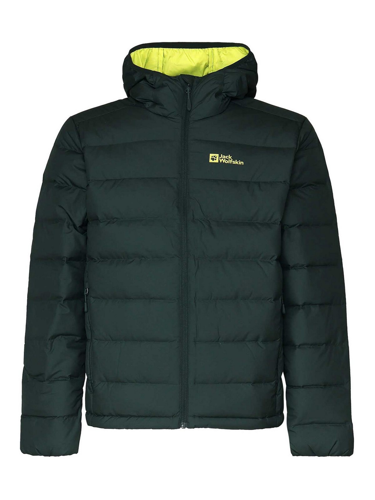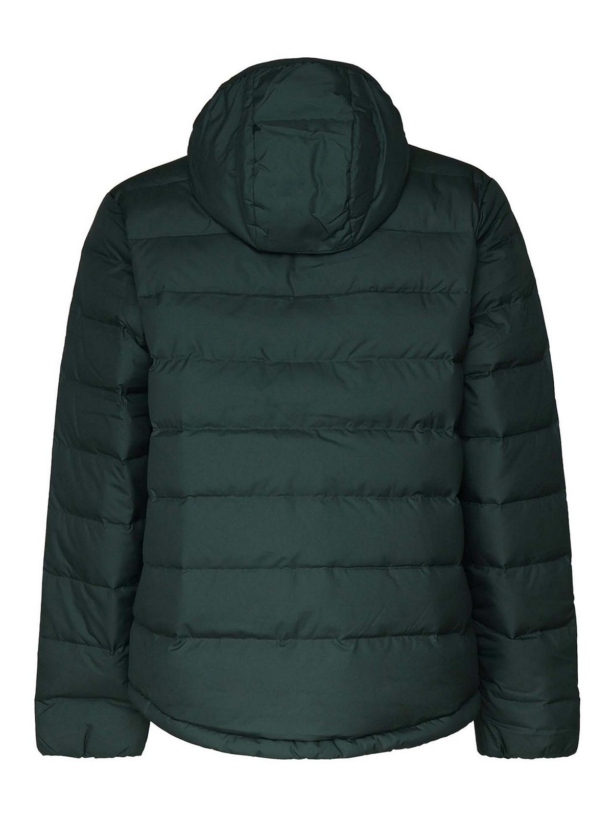 Chaqueta de nylon con capucha integrada, logotipo con cremallera en el pecho, color verde