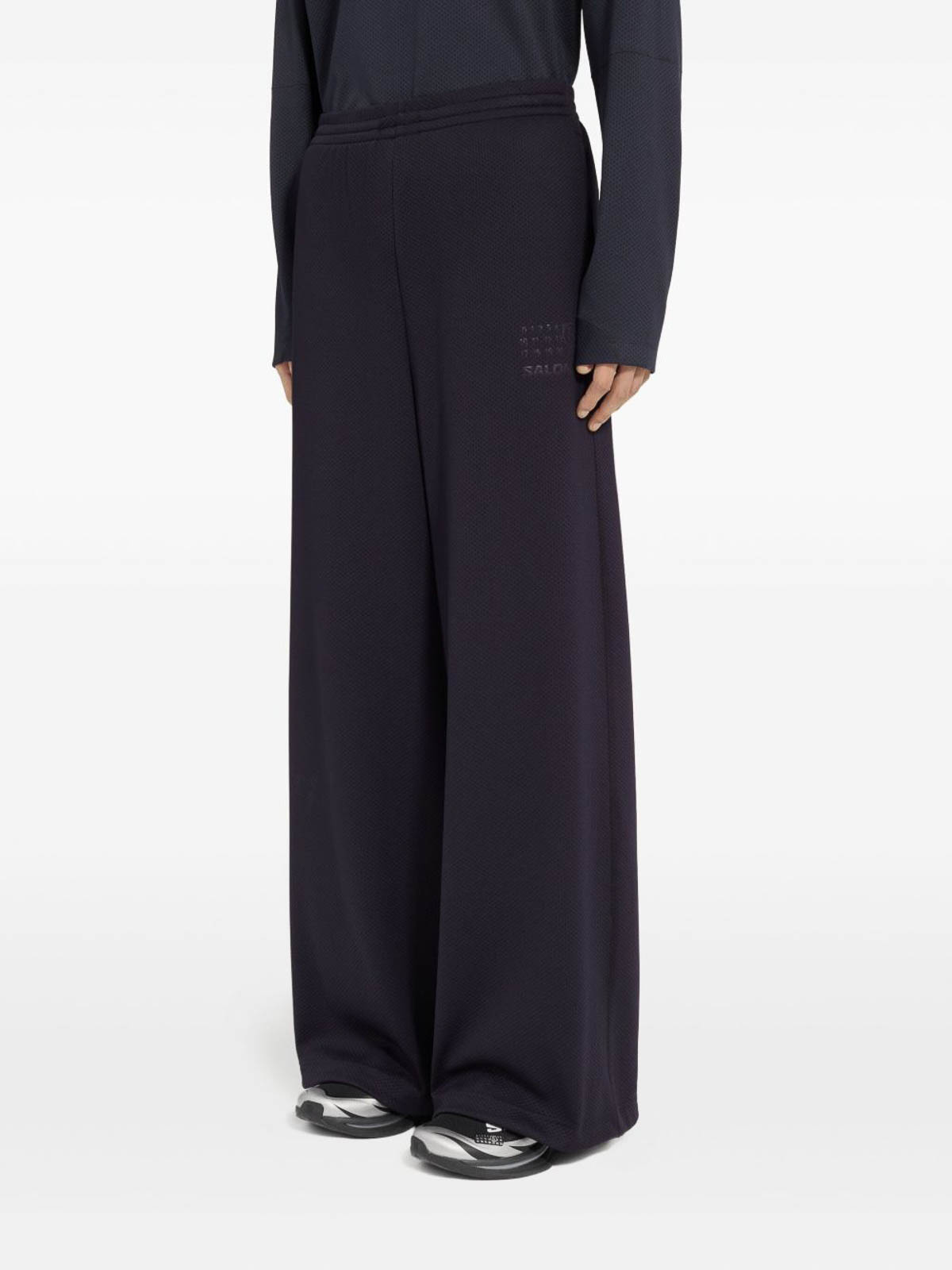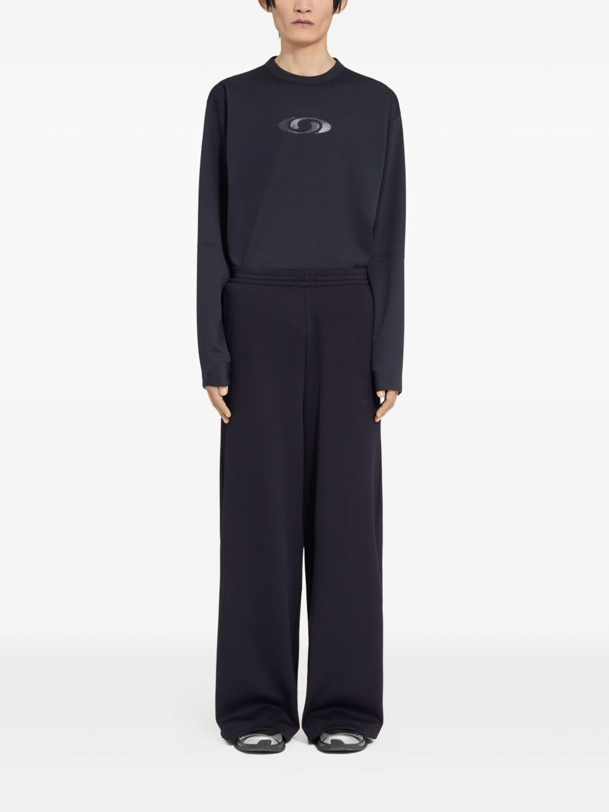 Tejido texturizado azul oscuro, cintura elástica, puños con cordón, estampado del logotipo