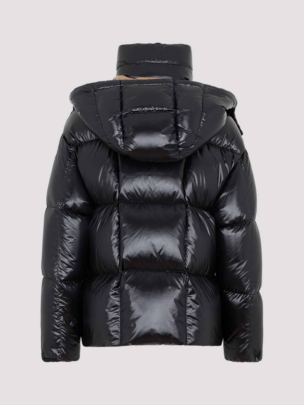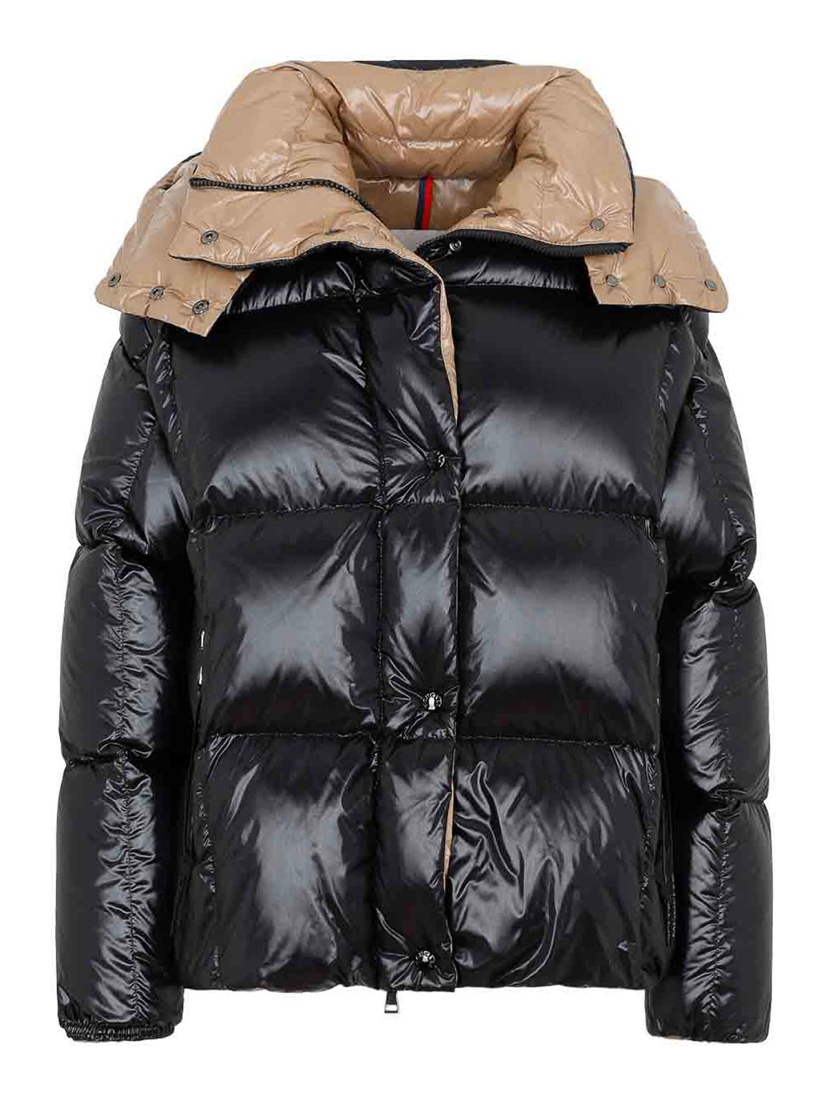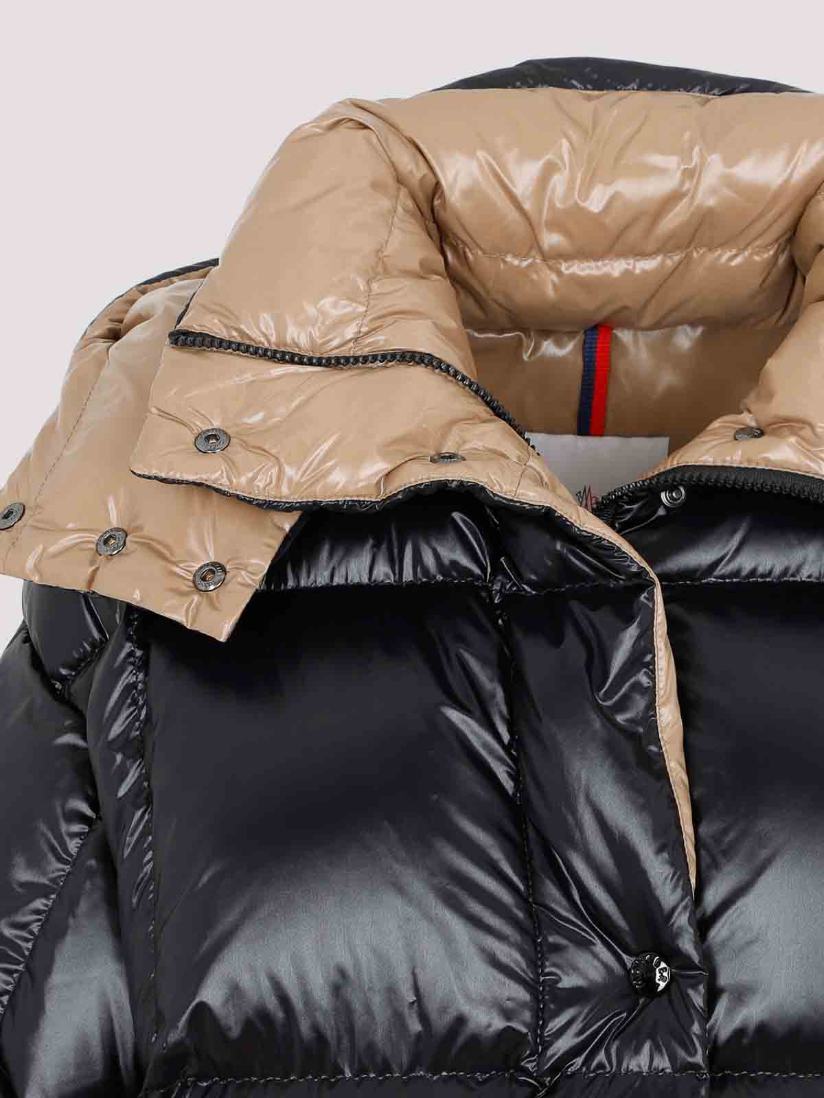 Chaqueta paraná negra Moncler. Confeccionada en tejido de poliamida. Cuello alto, capucha abotonada adjunta, cierre con cremallera oculta en la parte delantera, cierre con botones en la parte delantera, bolsillos laterales con cremallera, mangas largas, dobladillo recto, forro marrón, efecto acolchado. Diseño acolchado.