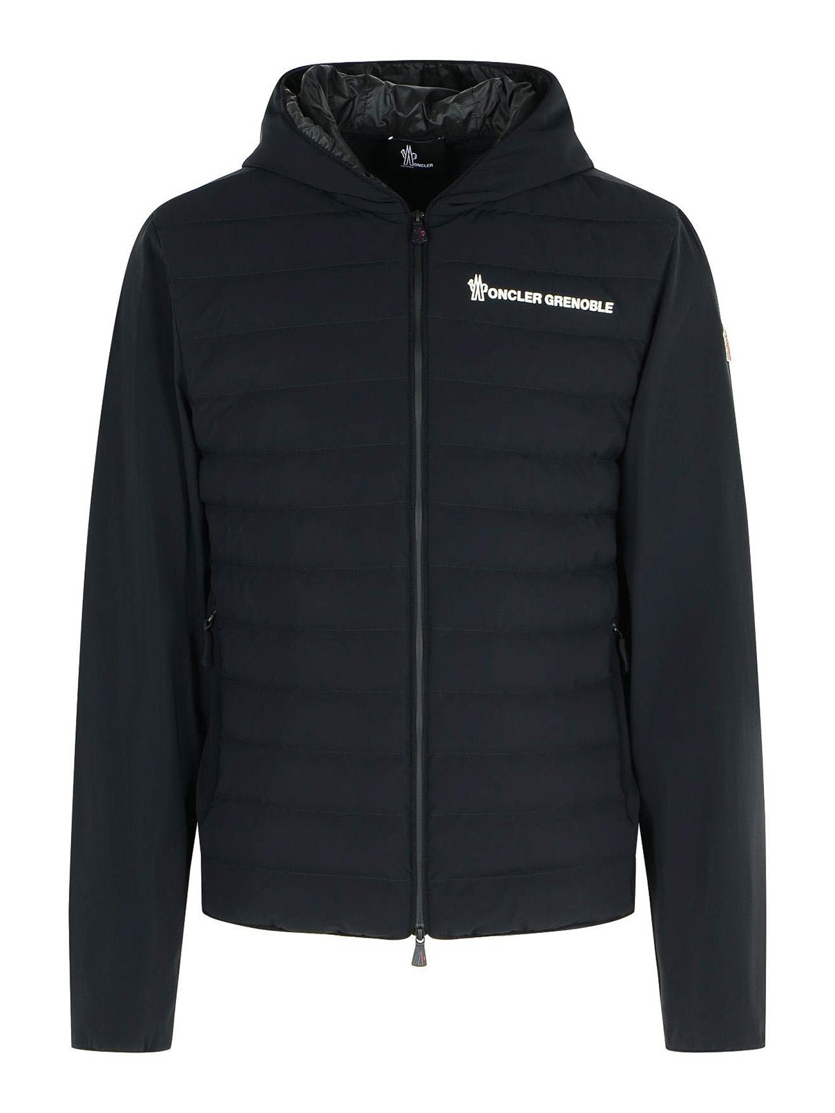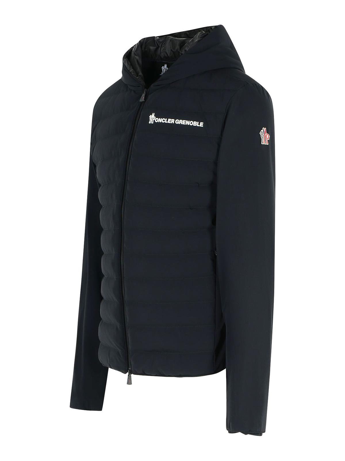 Capucha fija en mezcla de ganso, cremallera, logotipo en contraste en el pecho, bolsillos con cremallera en malla técnica, puños elásticos