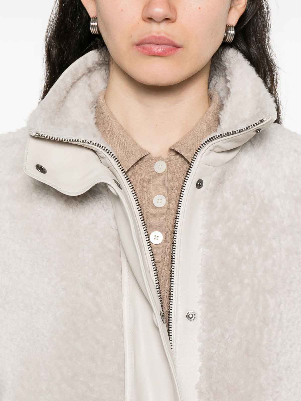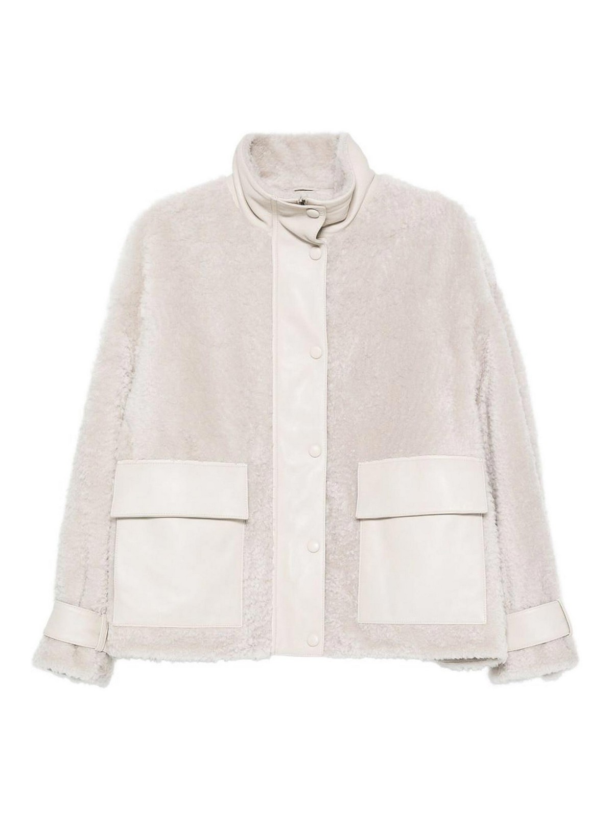 Bolsillos de parche con cierre de botones con textura de peluche de color blanquecino