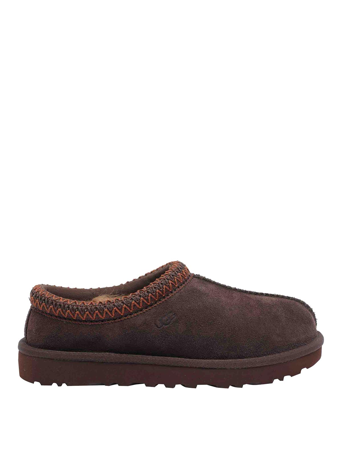 Mules Tasman Ugg de color marrón oscuro, punta redonda, logotipo lateral