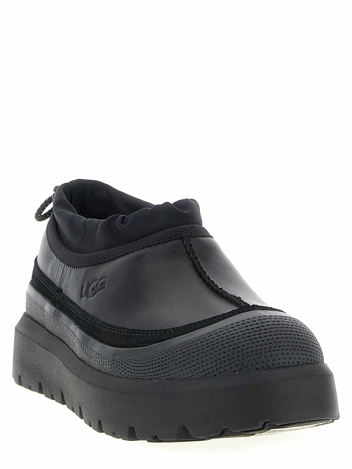Sabots impermeables de piel tipo «Tasman Weather Hybrid» con costuras soldadas, forro y plantilla de felpa rugosa, galoscia fija, cordón en el tobillo y suela con inserciones de goma de araña.