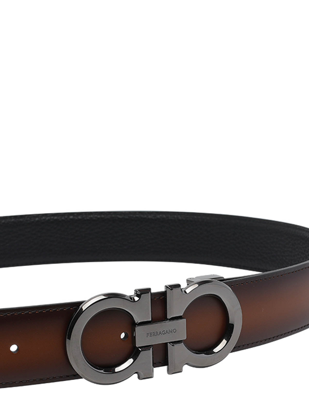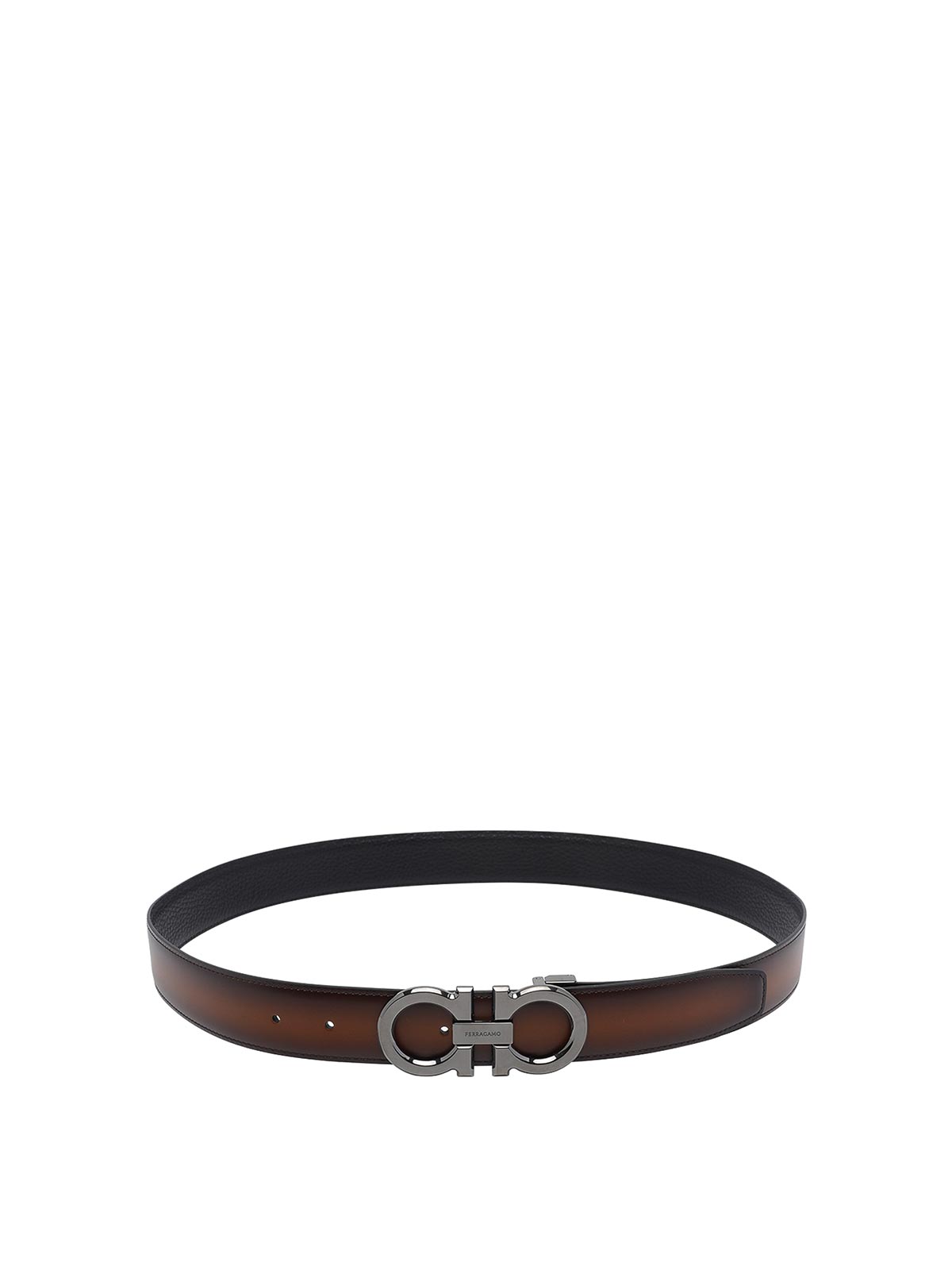 Cinturón Ferragamo marrón doble ajustable con cierre de gancini, parte superior de piel