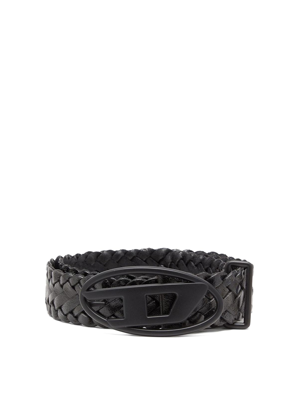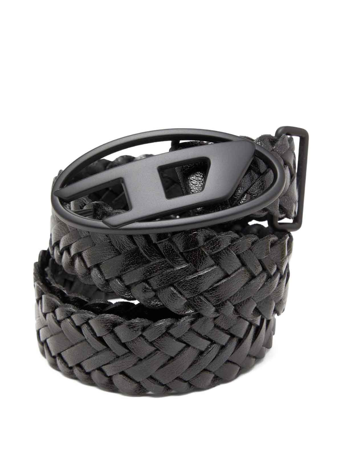 Cinturón de piel negra con hebilla con el logotipo y diseño trenzado de Diesel, confeccionado para un ajuste unisex. Combinando un estilo contemporáneo con la funcionalidad, este cinturón es perfecto para realzar los atuendos casuales o añadir un toque refinado a looks más pulidos. Un accesorio versátil que aporta sofisticación moderna y una marca distintiva a cualquier armario
