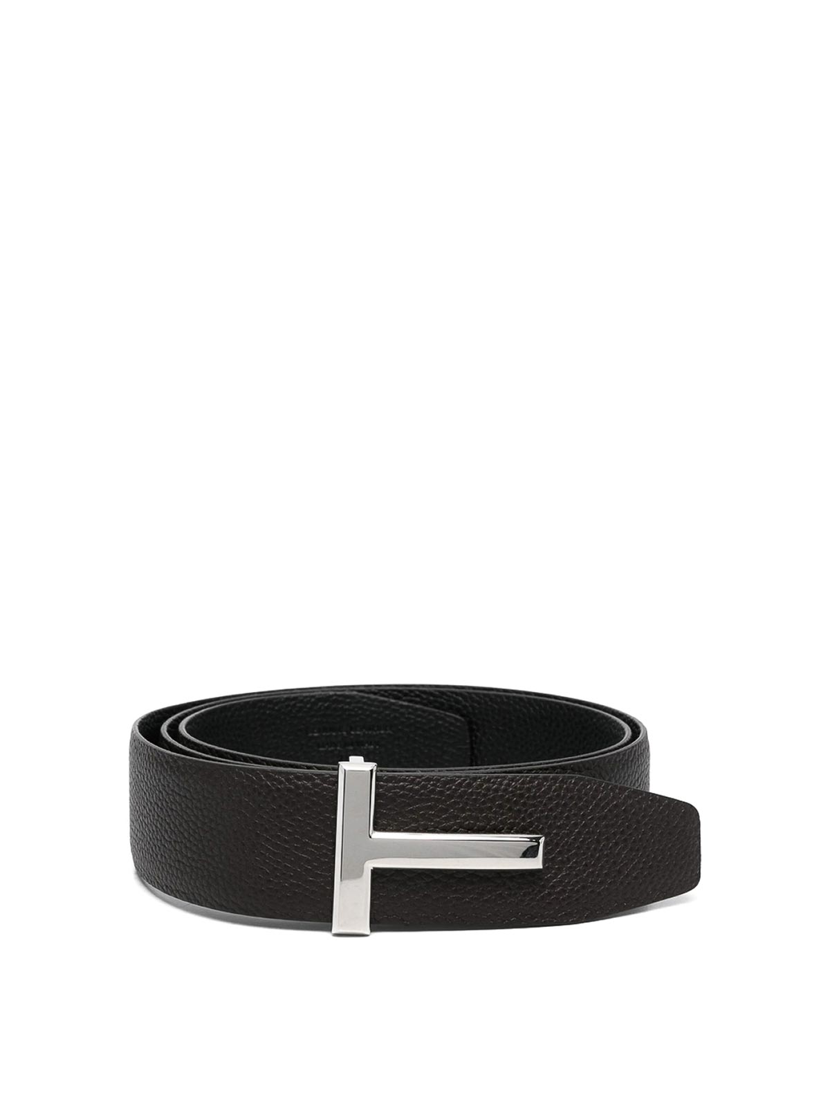 Negro/marrón, piel de becerro, textura granulada, cierre con hebilla con el logotipo, herrajes plateados, orificios perforados, ajuste ajustable