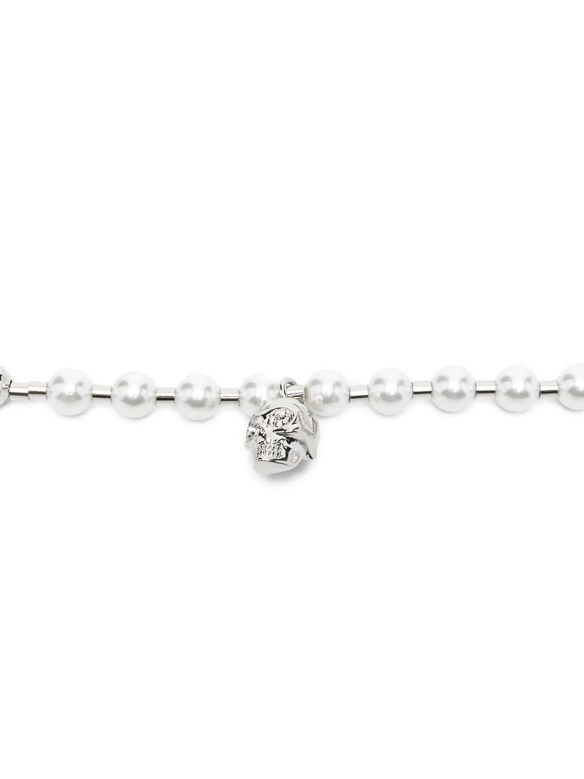 Colgante de calavera con adorno de perlas falsas en tono plateado