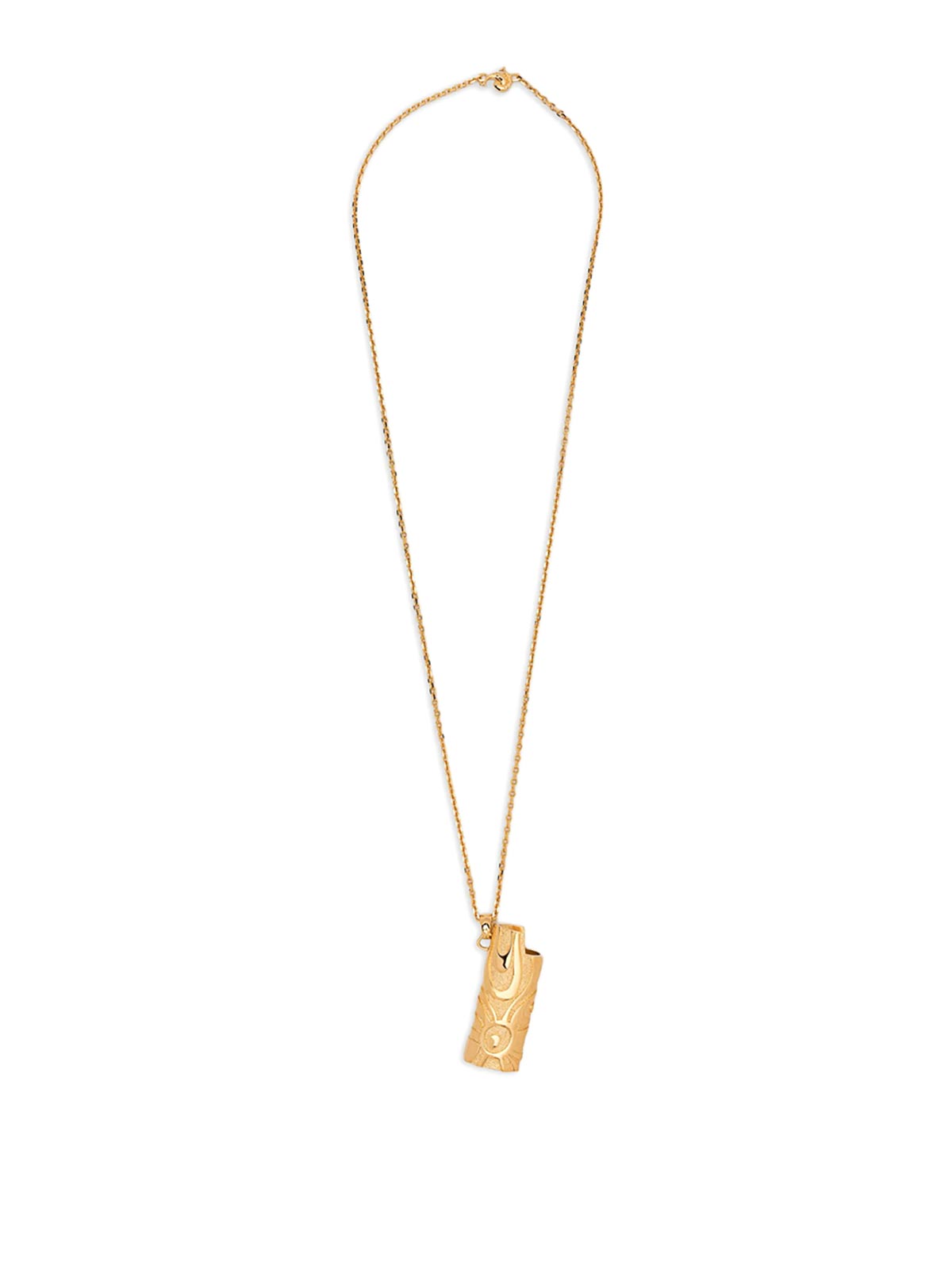 Cadena dorada con diseño estampado en tono, cierre de langosta con detalles de eslabones y logotipo grabado