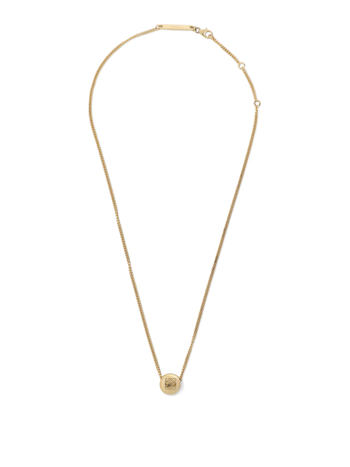 Collar con colgante de guijarros de Loewe y plata dorada. Confeccionado en plata de ley con un acabado dorado, presenta un dije en forma de anagrama en forma de guijarro, un cierre con cierre de mosquetón y un ajuste ajustable.