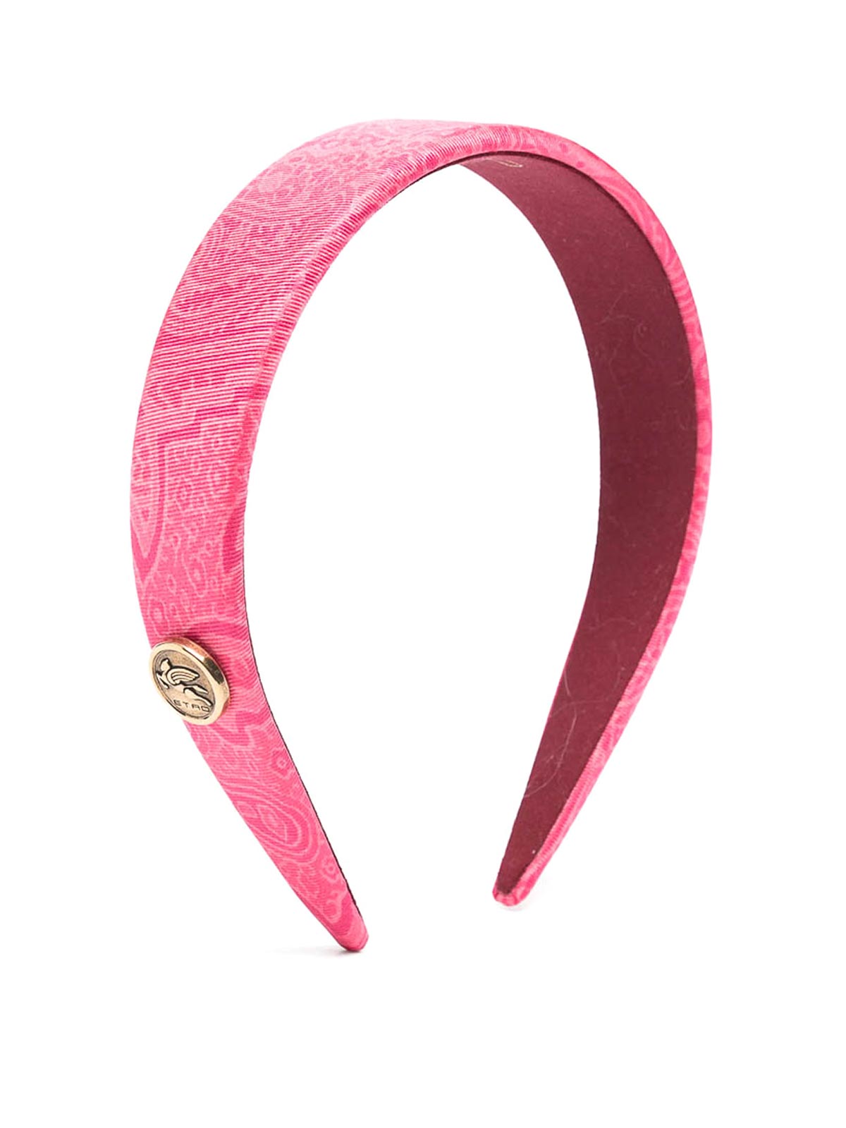 Diadema: estampado de cachemir rosa, detalle de botones metálicos en tono dorado, estilo diadema forrada