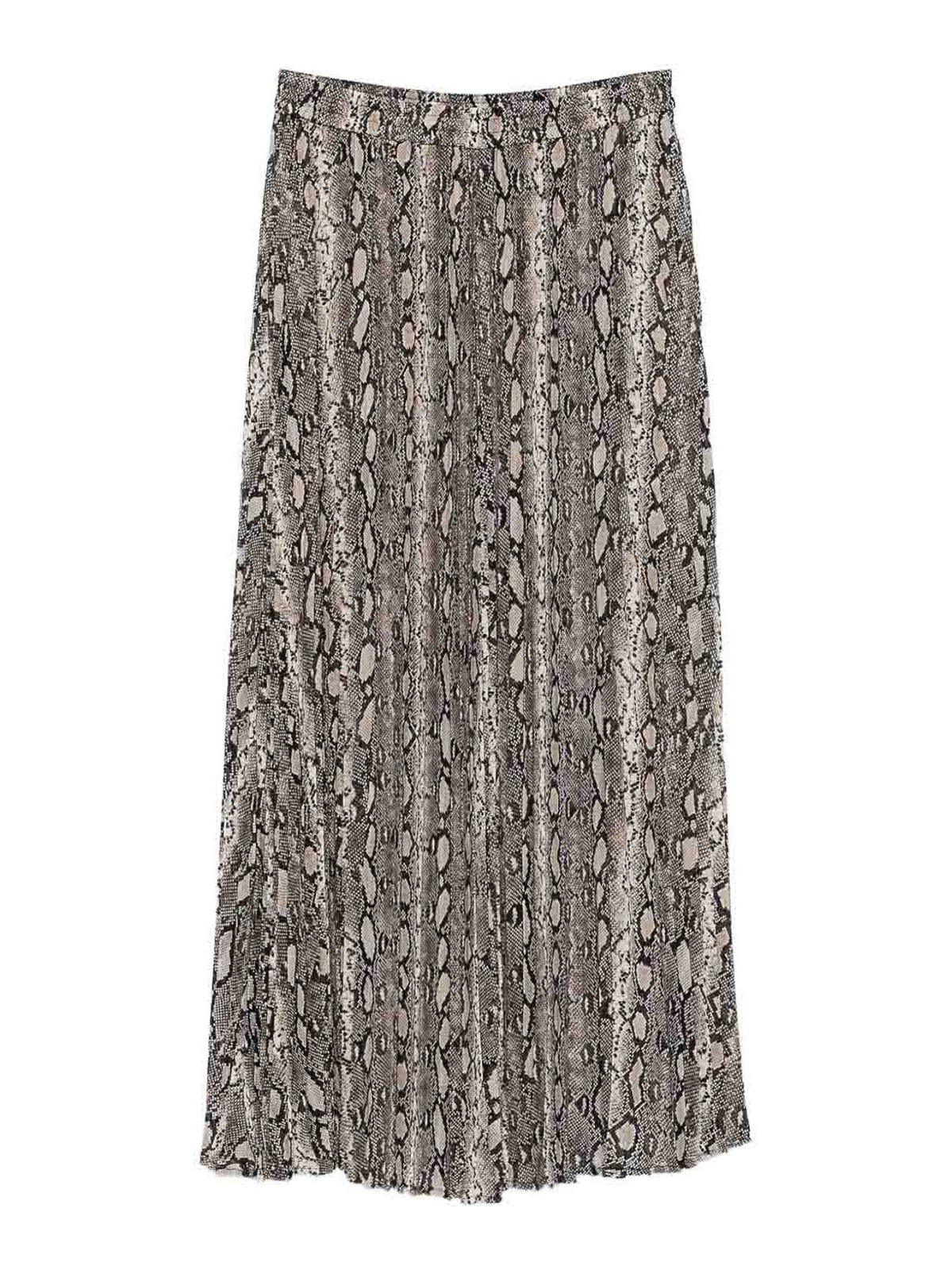 Falda maxi plisada con estampado de serpiente de Michael Kors, una prenda elegante y versátil que combina una textura elegante, un diseño moderno y un estilo sencillo para looks de día o de noche.
