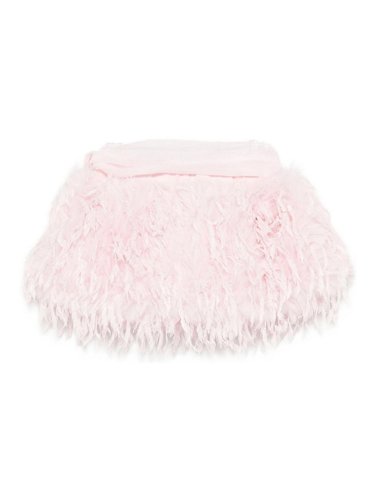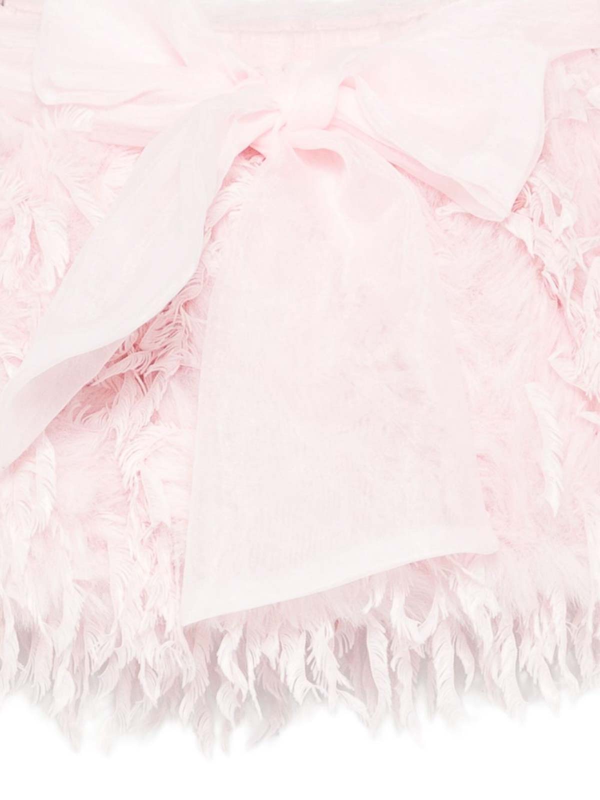 La falda con lazo presenta trabillas rosas en la cintura con un lazo