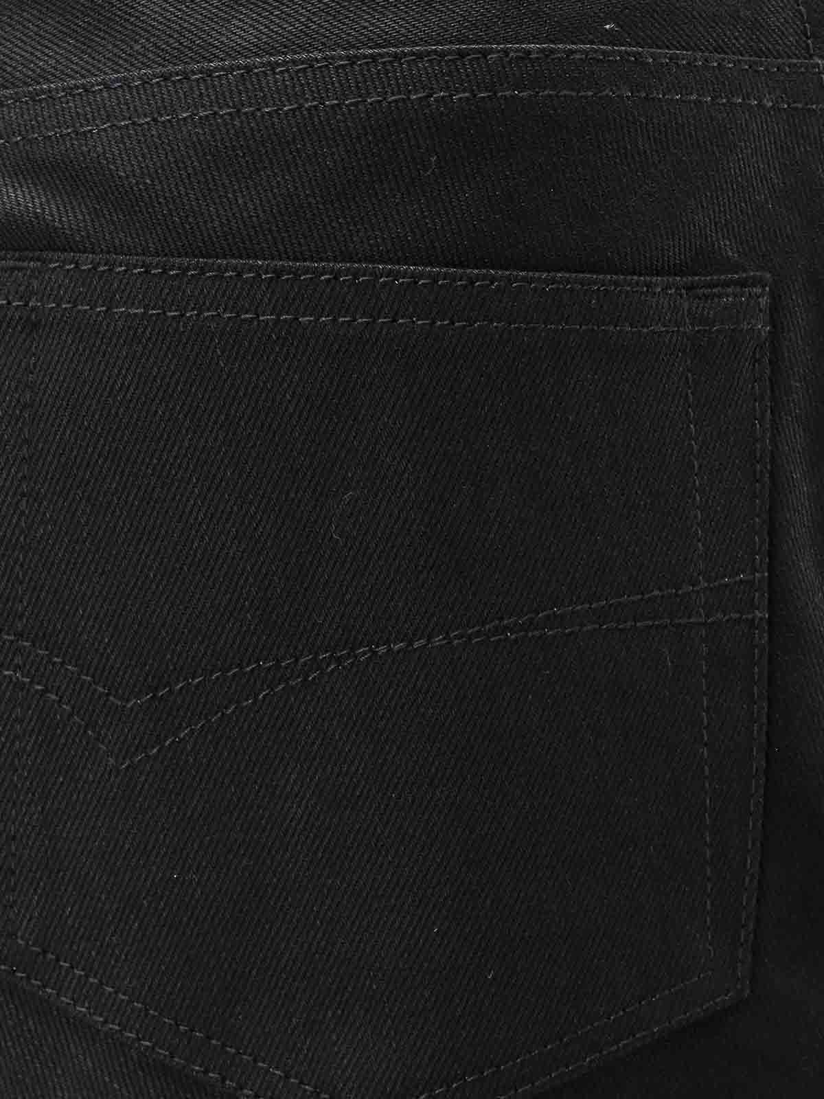 Cierre con cremallera y botón, cinco bolsillos, trabillas, parte inferior acampanada, 100% algodón