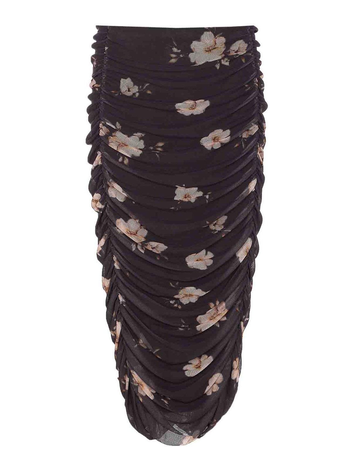 Falda nerea negra Mar de margaritas con cremallera y gancho, estampado floral, corte elástico, modelo midi Nombre del color del