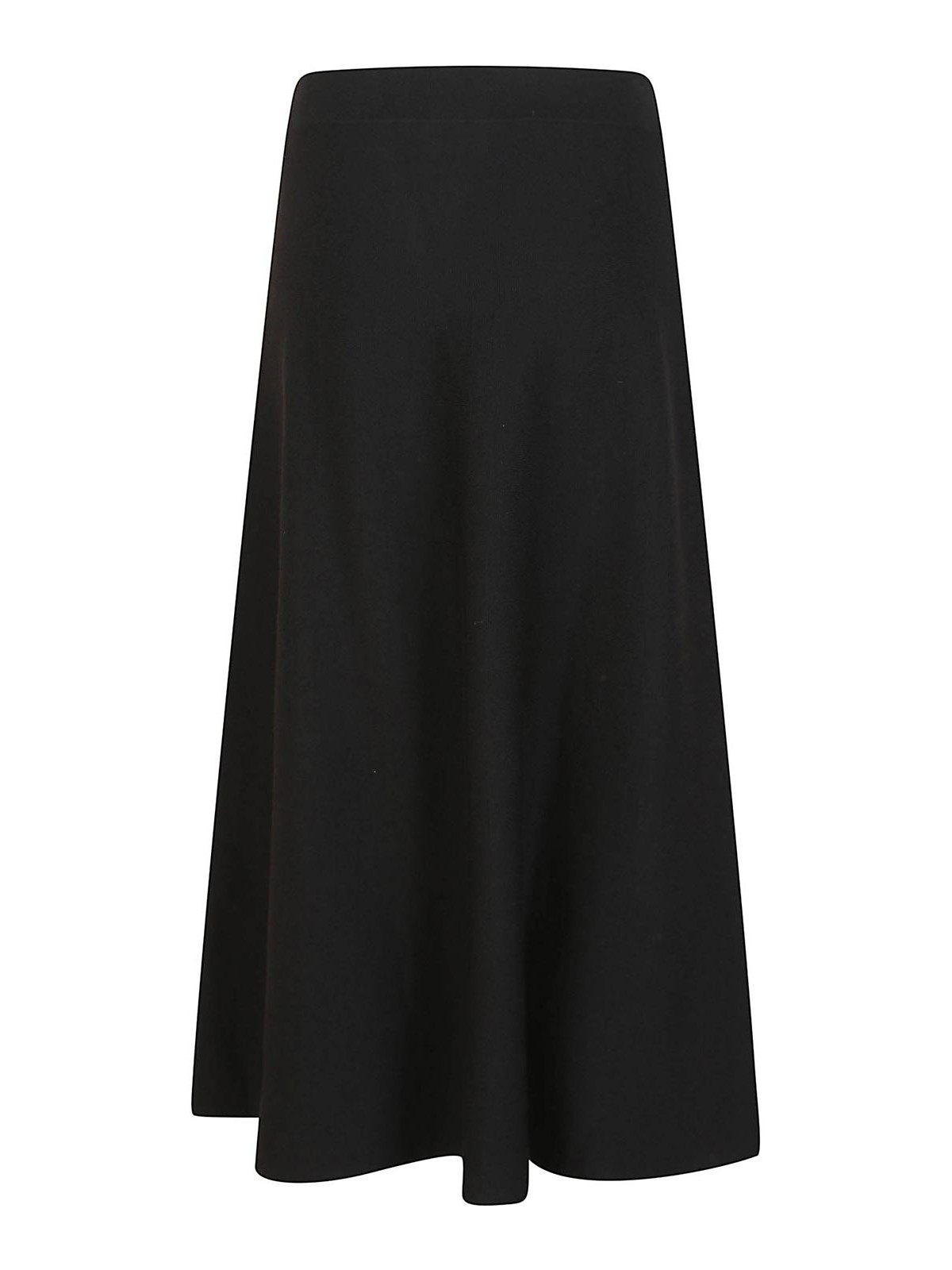 Falda de punto en mezcla de lana, color negro, cintura elástica, línea acampanada.