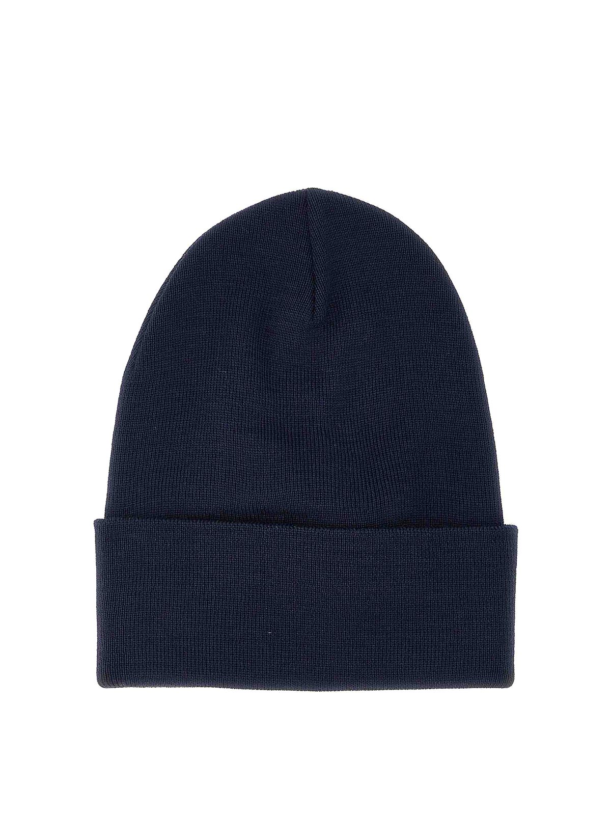 Gorro de lana virgen con parche con logo doblado en la parte delantera.