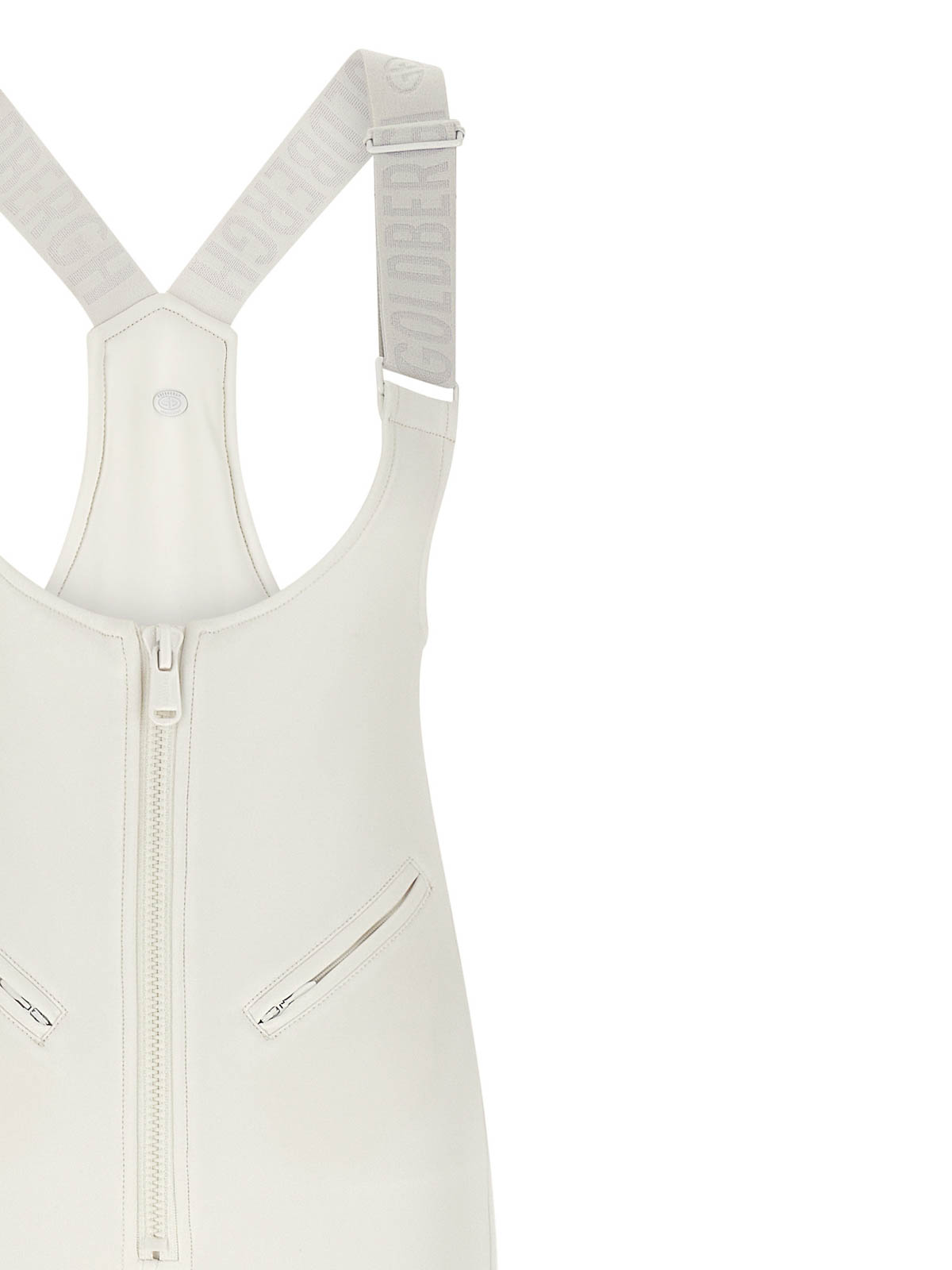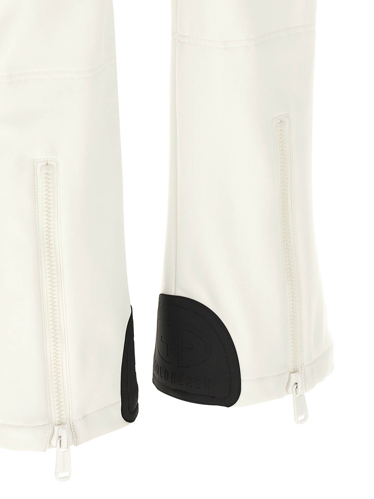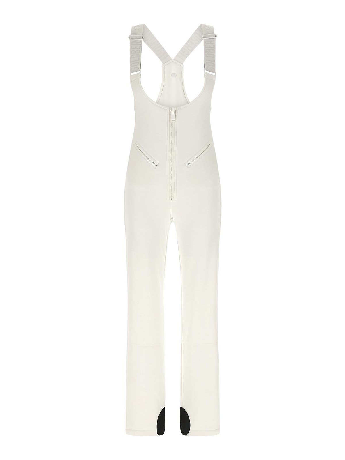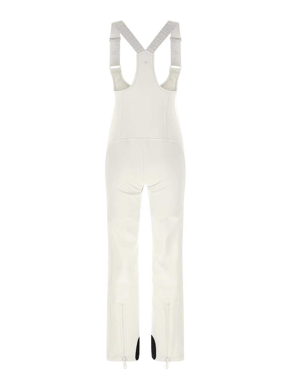 Pantalones cortos de esquí softshell transpirables e impermeables de Phoebe, forro polar, tirantes ajustables de tejido elástico, cierre frontal con cremallera, bolsillos, pantalones acampanados con cremallera, refuerzo de silicona con logotipo estampado y polaina interior.