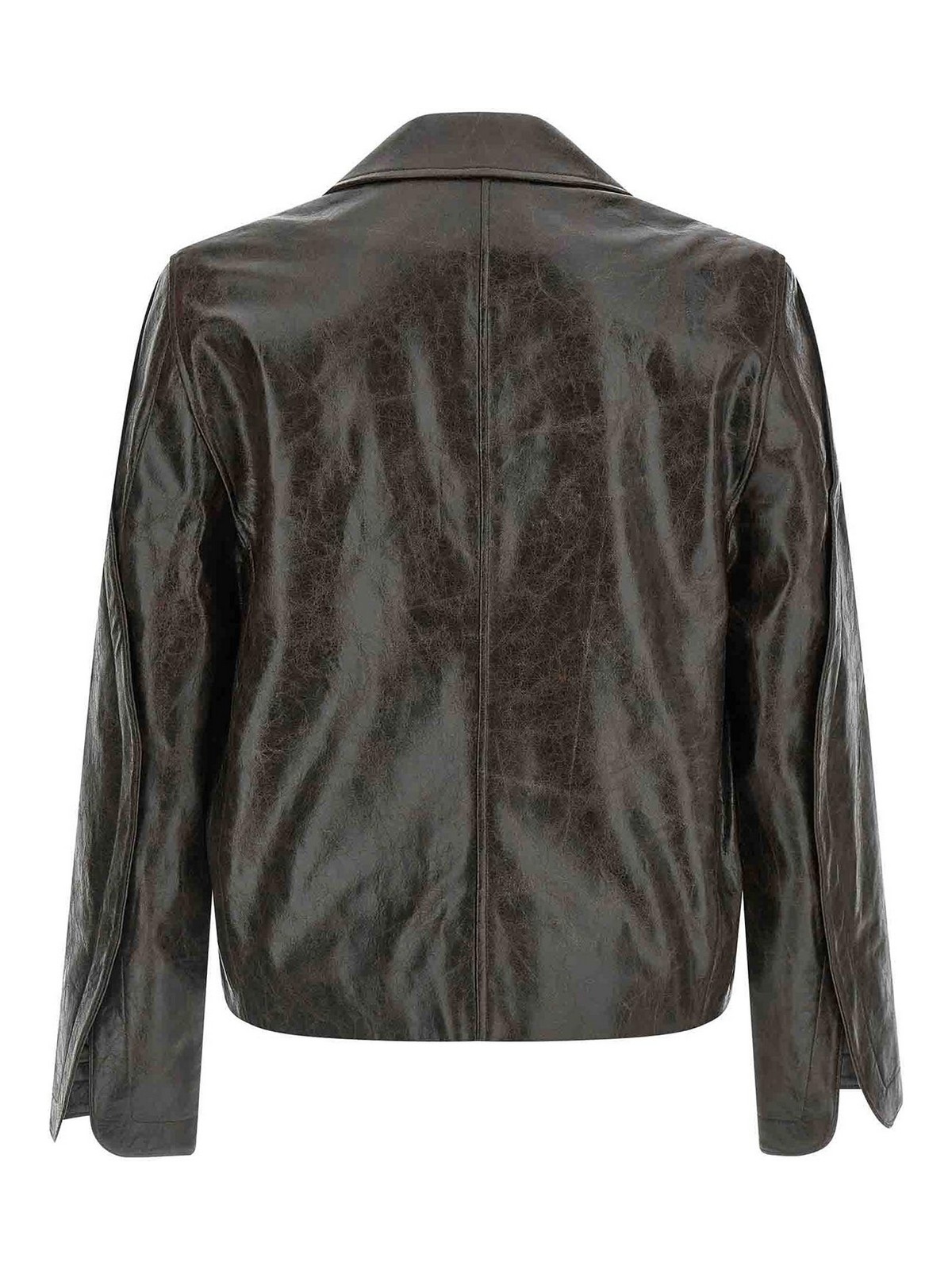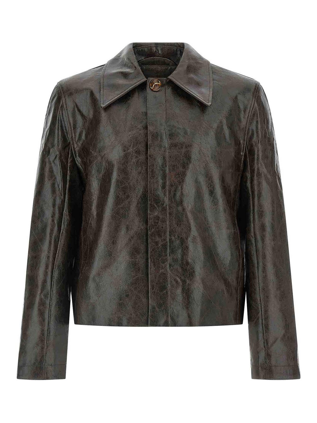 chaqueta keane' de poliéster revestido con efecto piel craquelada, cuello camisero ancho, cierre oculto con botones en la parte delantera, correa para el hombro ligeramente acolchada, mangas largas acampanadas con abertura en los puños y forro de viscosa.