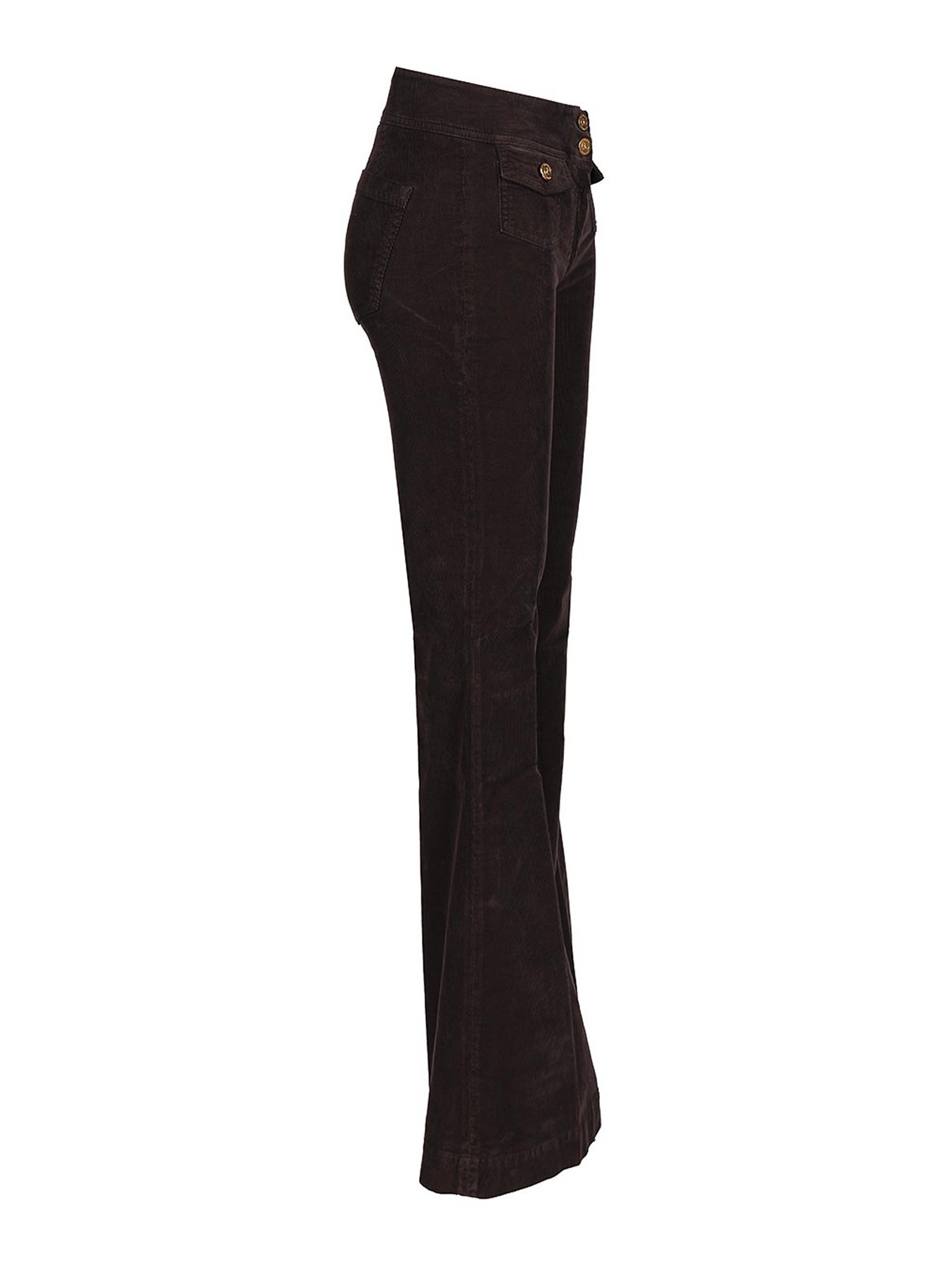 Pantalones acampanados de talle medio con cuatro bolsillos de parche con solapa y botón