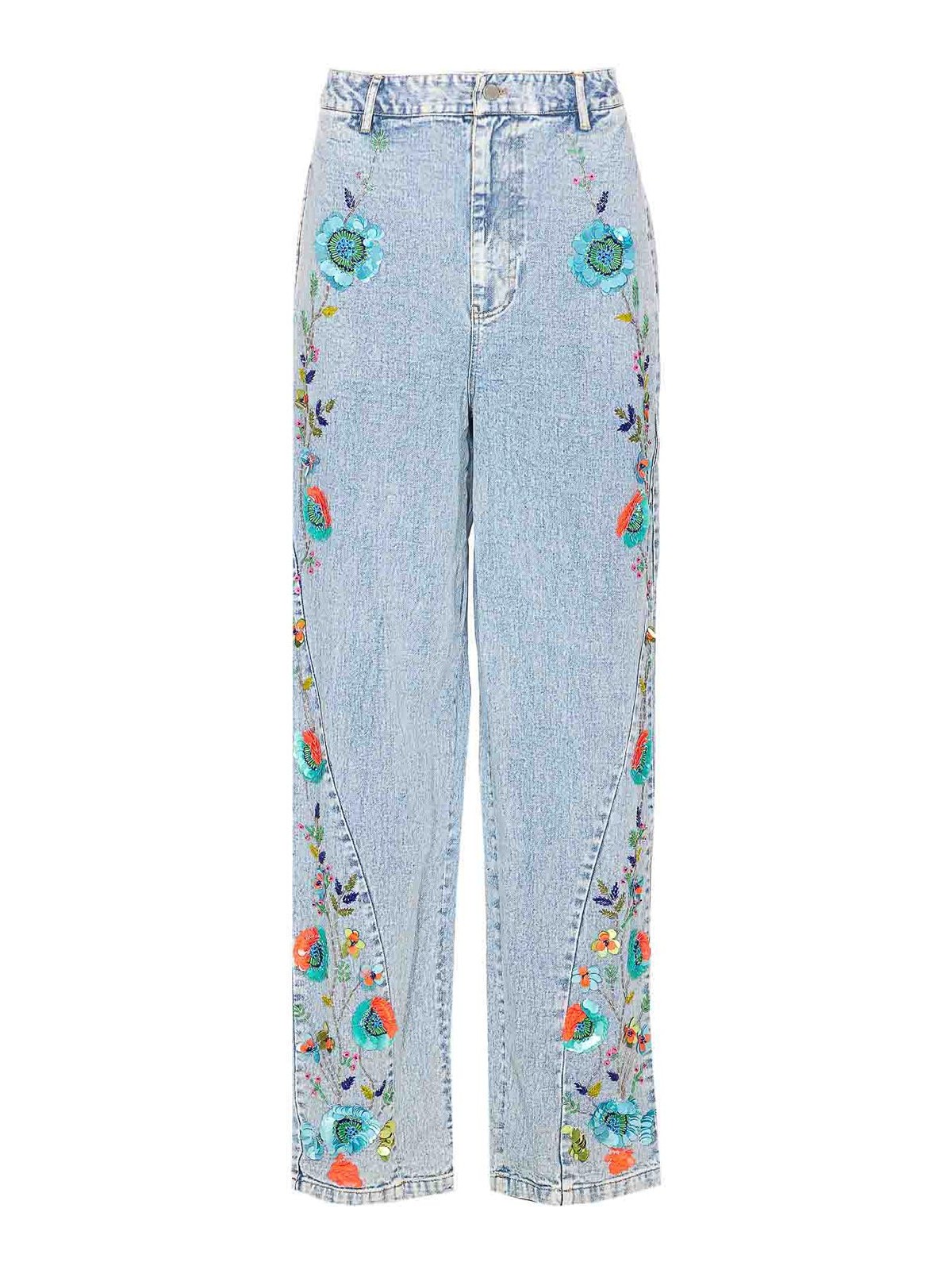 Vaqueros Essentiel Antwerp azul marino con bolsillos con botones y cremallera con lentejuelas