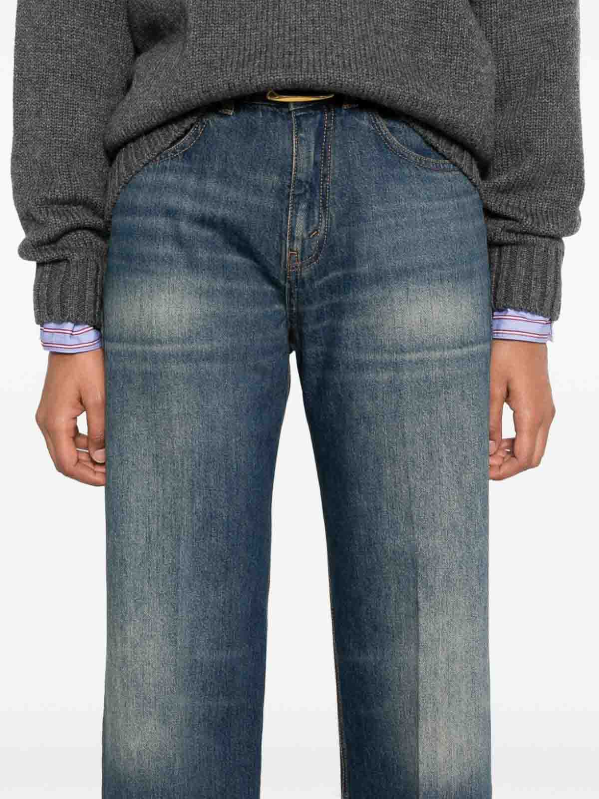, vaqueros con bolsillo en mezclilla lavada a la piedra con un efecto aclarado, corte recortado, cremallera oculta y trabillas para el cinturón