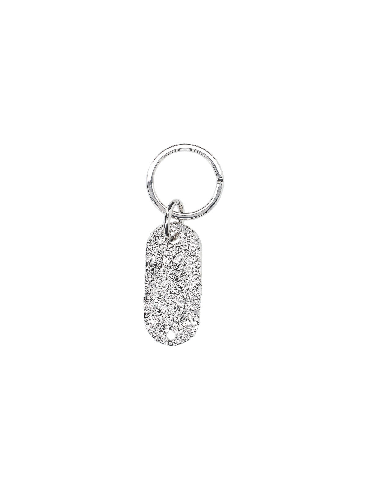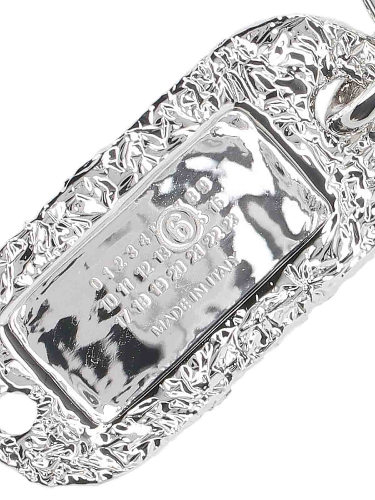 Llavero en lámina MM6 de Maison Margiela de latón bañado en plata, logotipo numérico en la parte delantera.