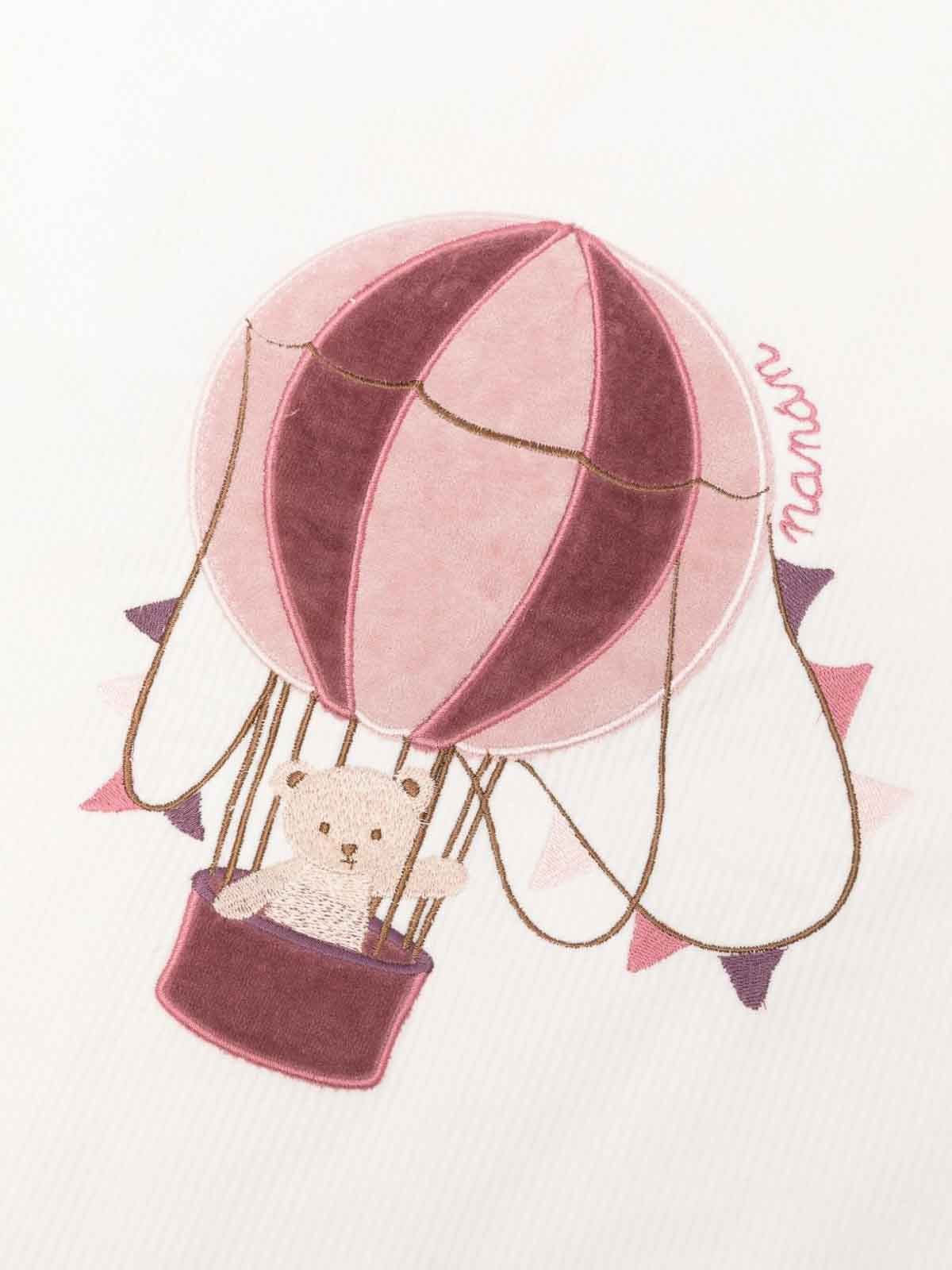 Envuelve a tu pequeño en suavidad y ternura con esta manta acanalada hecha de un tejido delicado y cálido, ideal para los recién nacidos sensibles. El refinamiento de un dulce osito de peluche en un globo aerostático añade un toque de magia y dulzura, perfecto para mimar a tu bebé durante los momentos de descanso o paseo. Un accesorio esencial para garantizar comodidad y estilo en cualquier estación del año.