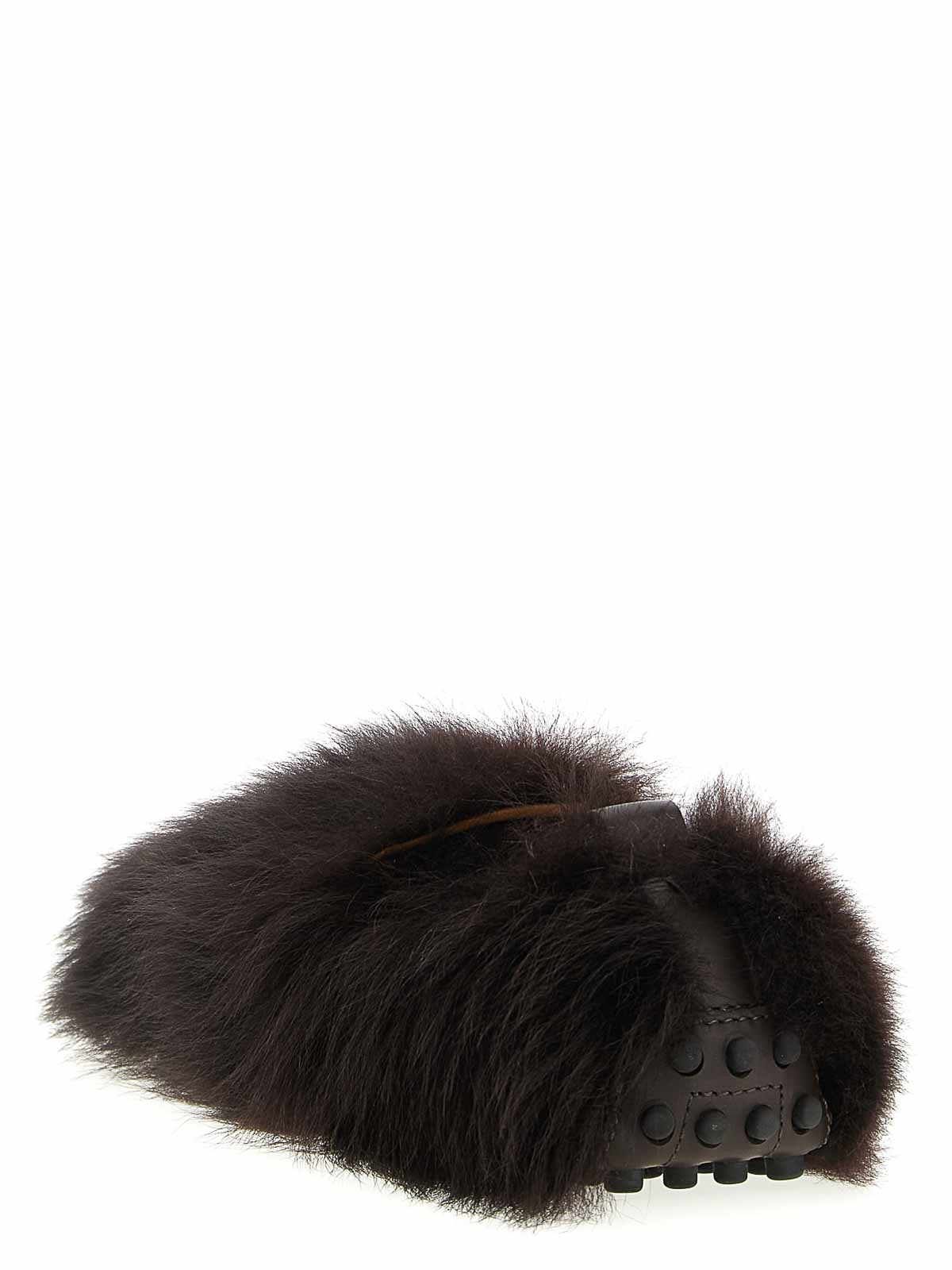 Mocasines de piel de oveja de pelo largo de Gommino con inserciones de piel de becerro tono sobre tono, espalda elástica y icónica suela de goma tods con gommini de goma.