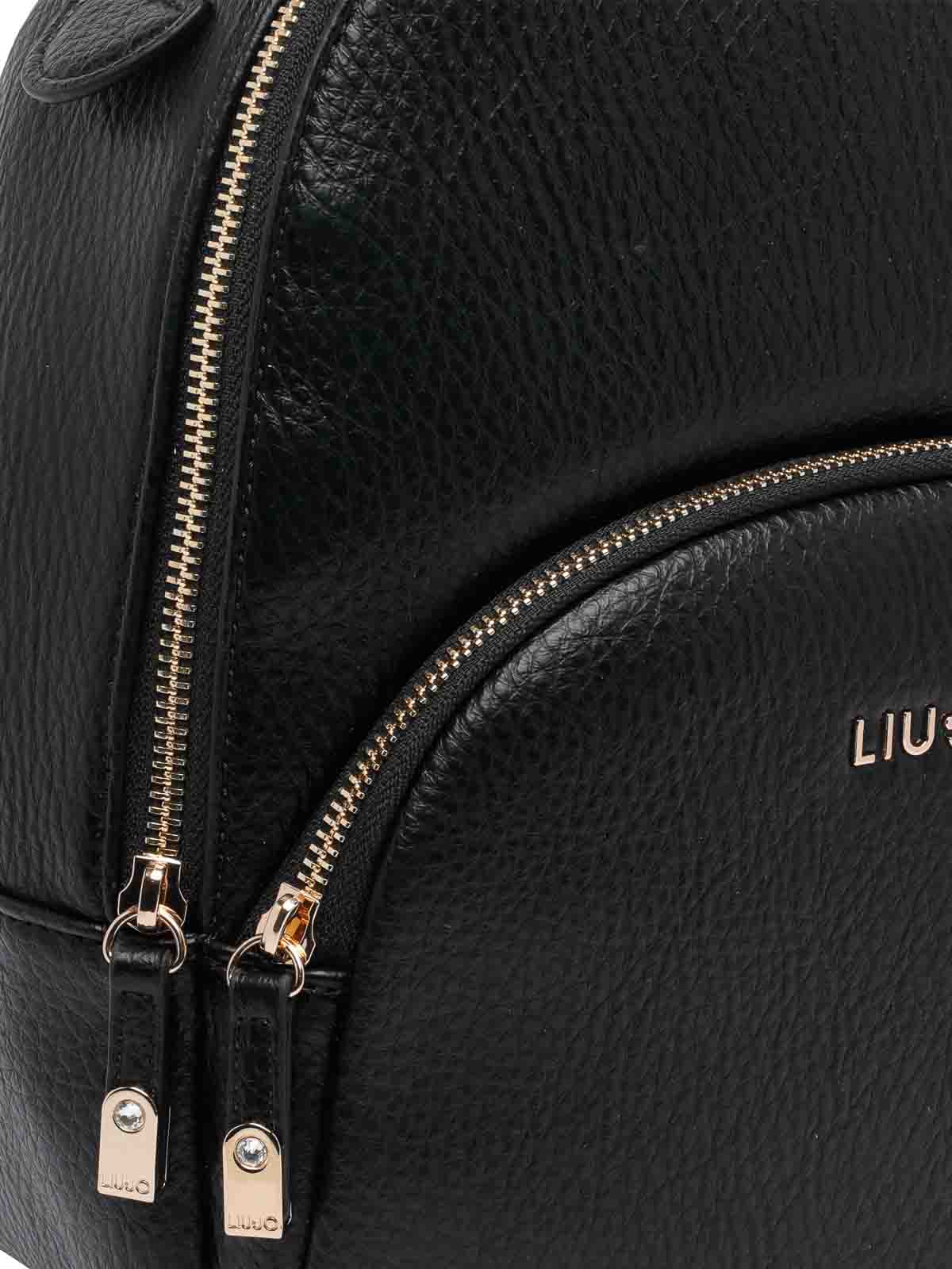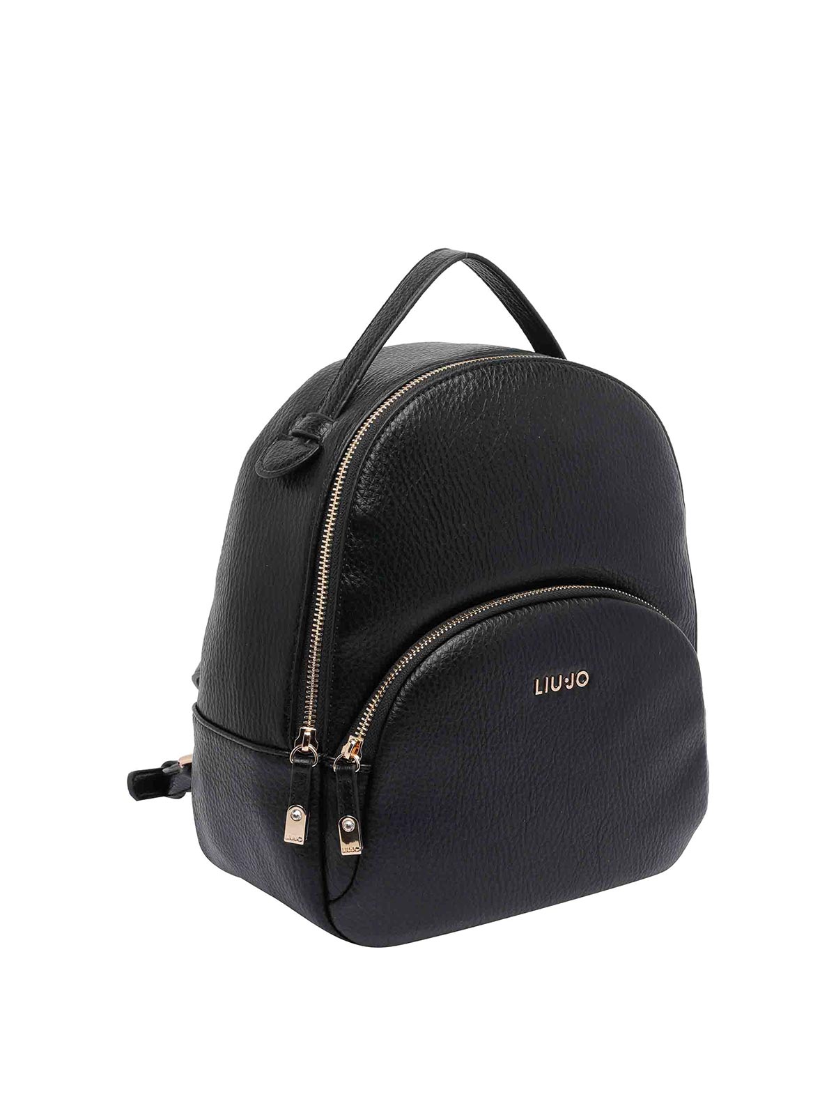 Mochila negra con el logotipo de Liu jo, bolsillo abierto con cremallera y bolsillo con cremallera, bolsillo frontal con cremallera, correas adaptables, logotipo frontal, logotipo frontal,